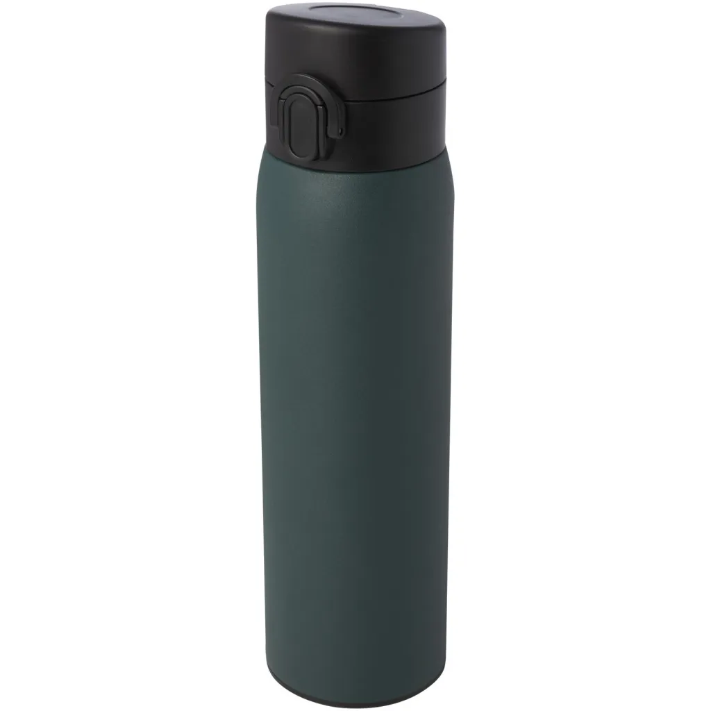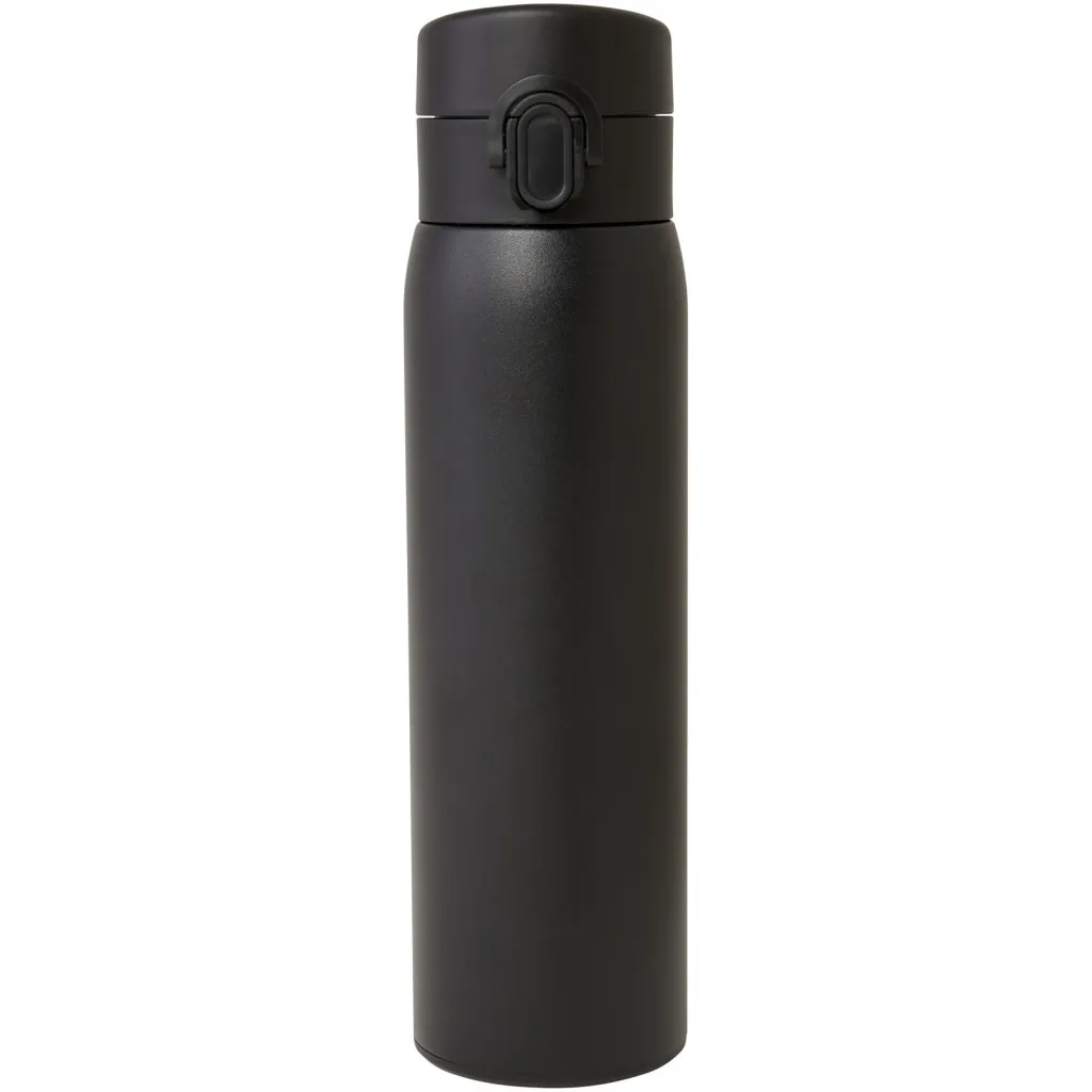Elegantna izolirana boca od recikliranog nehrđajućeg čelika s RCS certifikatom i mehanizmom za jednostavno otvaranje gumbom. Boca je nepropusna, a sa svojom bakrenom vakuumskom izolacijom piće će se održavati vrućim ili hladnim nekoliko sati. Zapremina je 450 ml. Predstavljeno u poklon kutiji od recikliranog kartona.