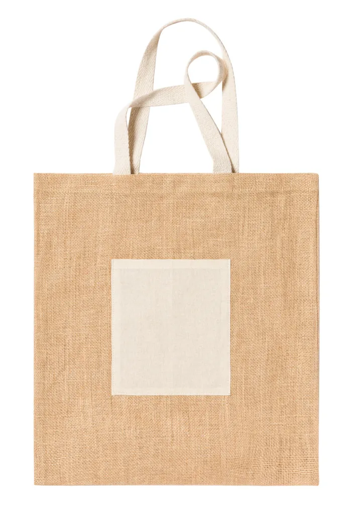 Torba za kupovinu izrađena od jute s pamučnim džepom i dugim ručkama.