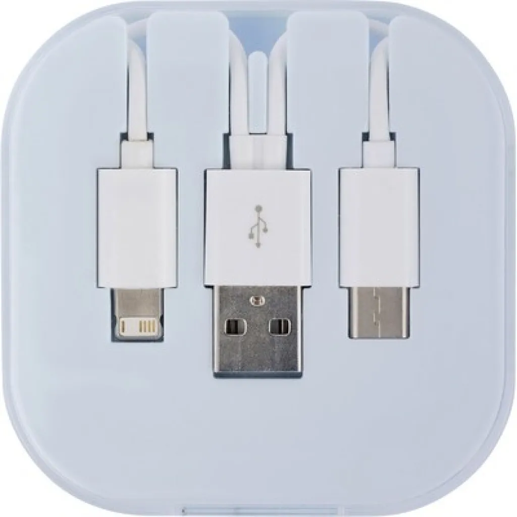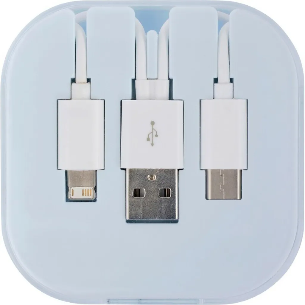 Kabel za punjenje s 3 izlaza: USB, tip C i 2 u 1 (mikro USB i kompatibilan s iOS-om), približno 24 cm, dolazi u kutijici.