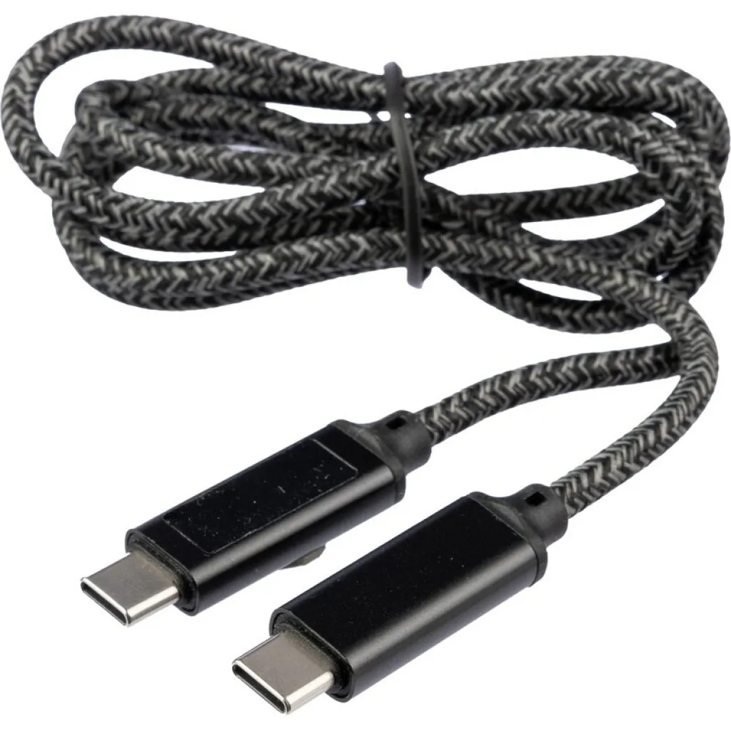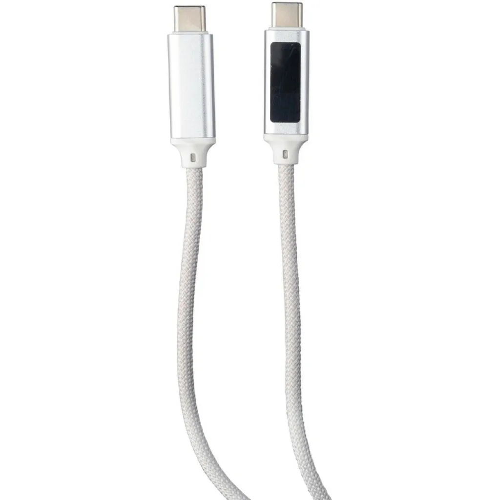 Kabel za punjenje i prijenos 100W, duljine 1 metar, USB-C na USB-C, plavi indikator brzine punjenja na jednom priključku, stane u džep, proizvod izrađen od najlonske tkanine i aluminija.