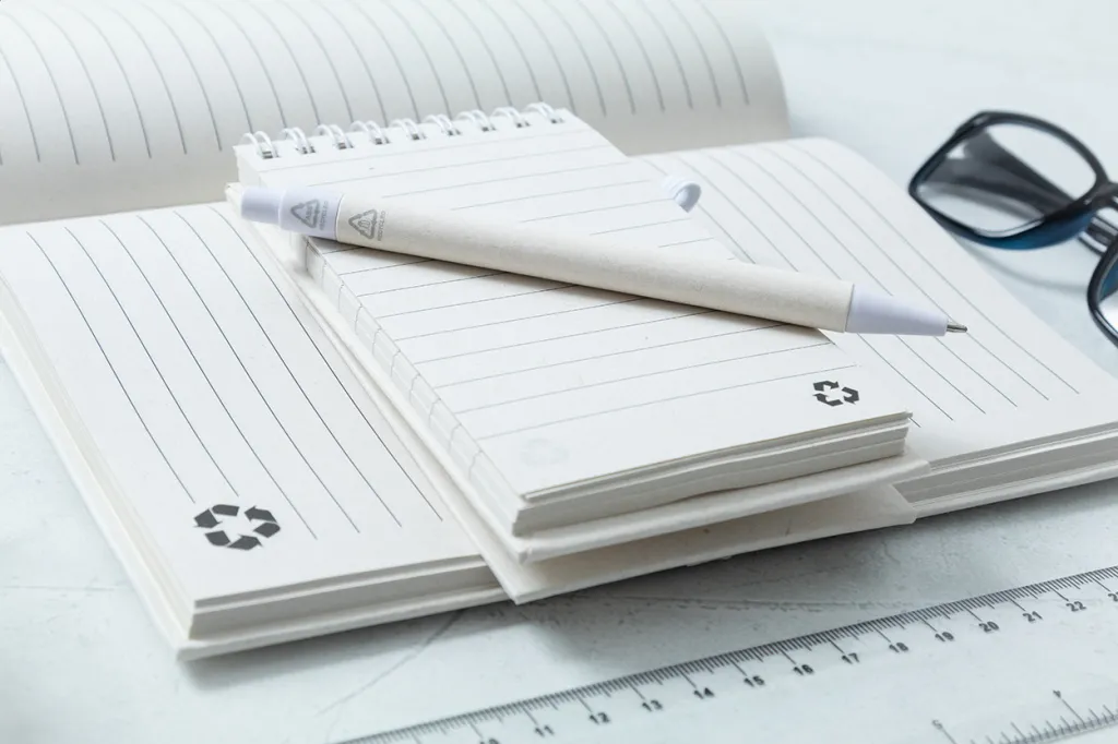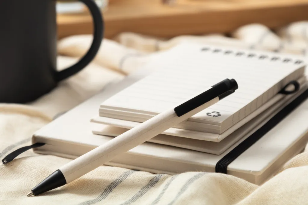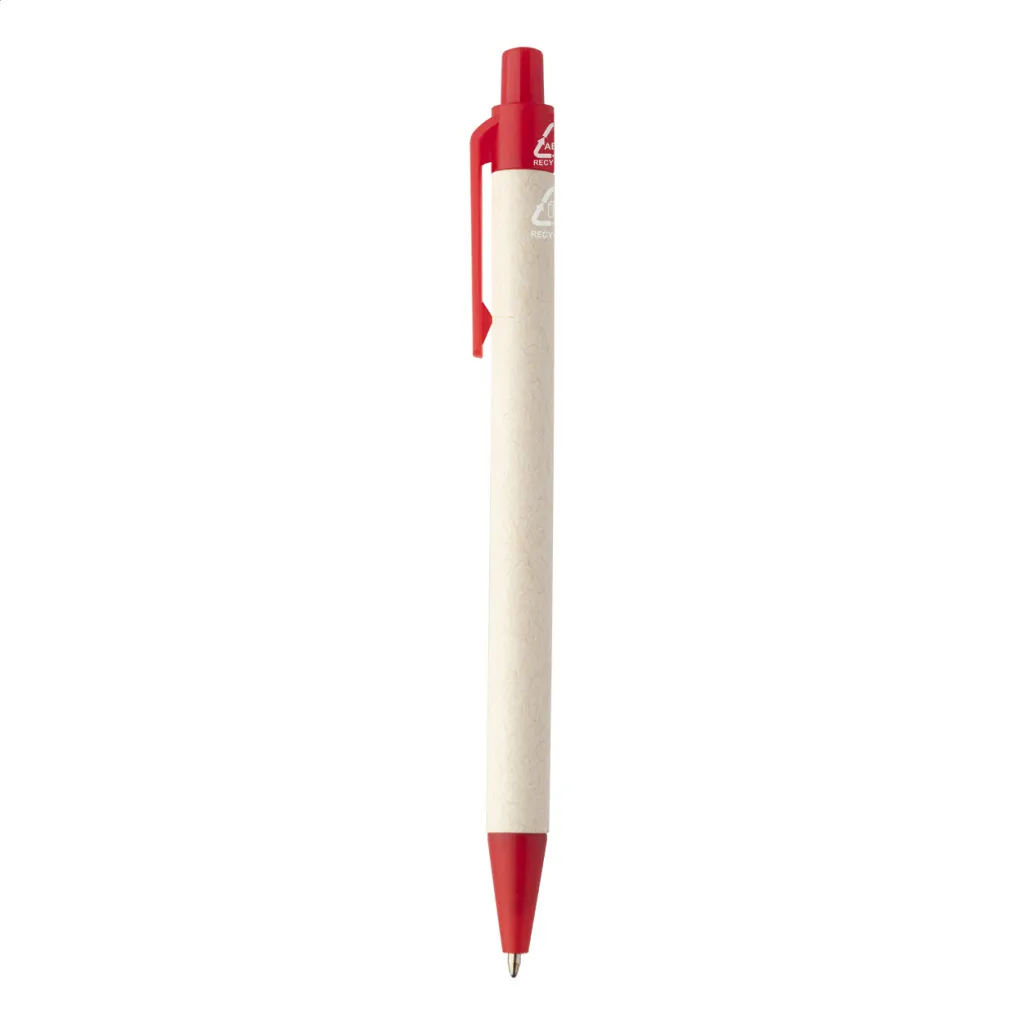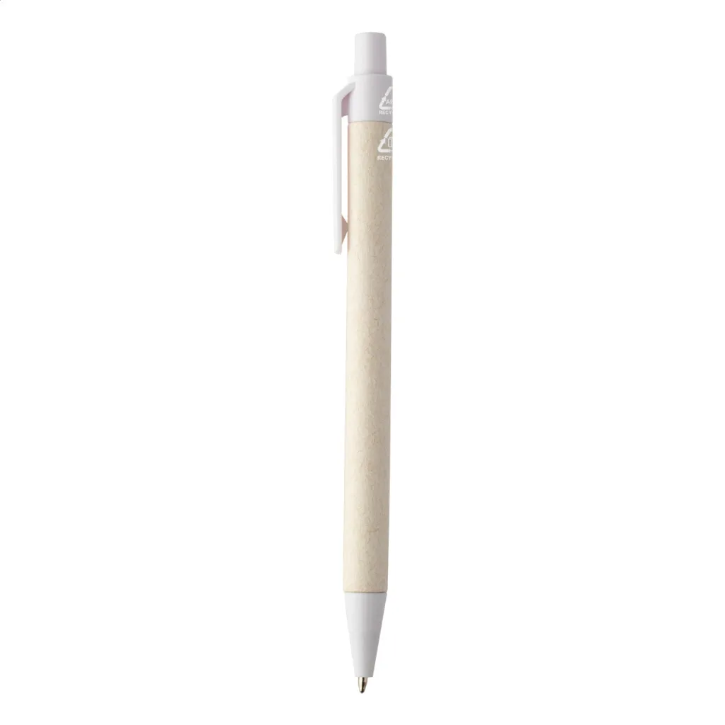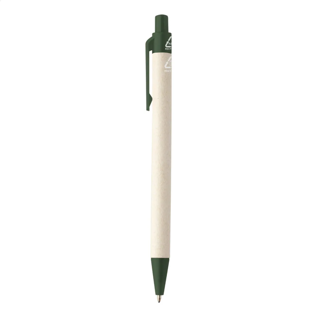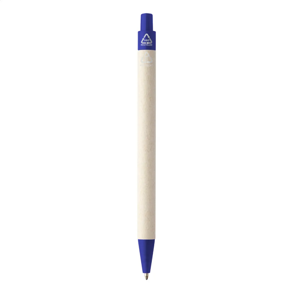 Kemijska olovka od recikliranog kartonskog papira za mlijeko s dijelovima od reciklirane ABS plastike. S plavom tintom.