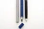 Metalna 2u1 kemijska olovka i olovka bez tinte s okretnim mehanizmom; plavo punjenje i vrh od metalne legure koja oksidira papir. Dolazi u crnoj poklon kutijici.