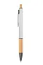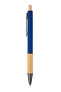 Kemijska olovka od recikliranog aluminija s drškom i gumbom od bambusa, gumiranim tijelom i završnim crnim (gunmetal) dijelovima. S plavim punjenjem.