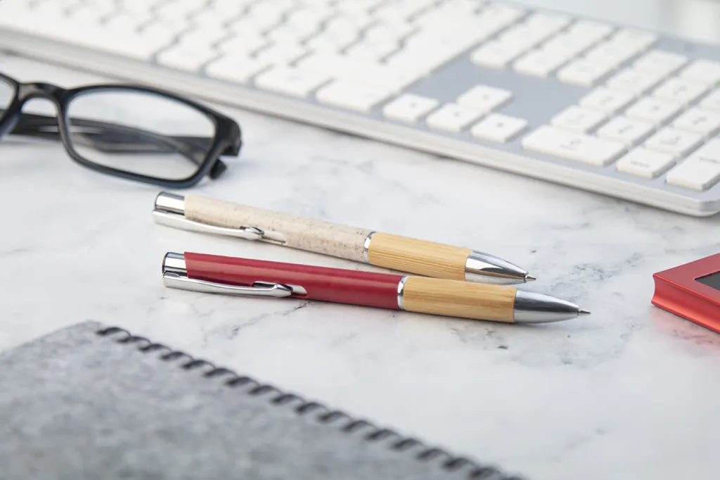 Kemijska olovka od ekološke plastike od pšenične slame s drškom od bambusa i metalnim dijelovima, plavo punjenje.