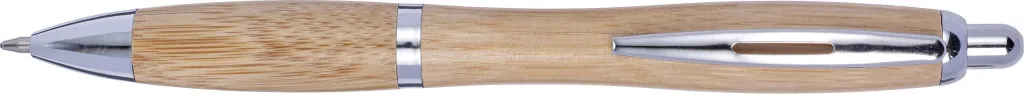 Kemijska olovka od bambusa s metalnim vrhom, vrhom, kopčom i trakom. Crna tinta.