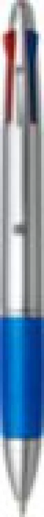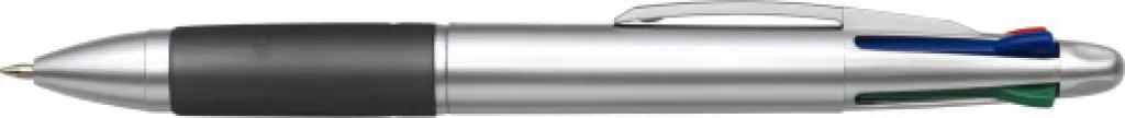 ABS plastična kemijska olovka s gumenim držačem i četiri boje tinte: crvena, plava, zelena i crna.