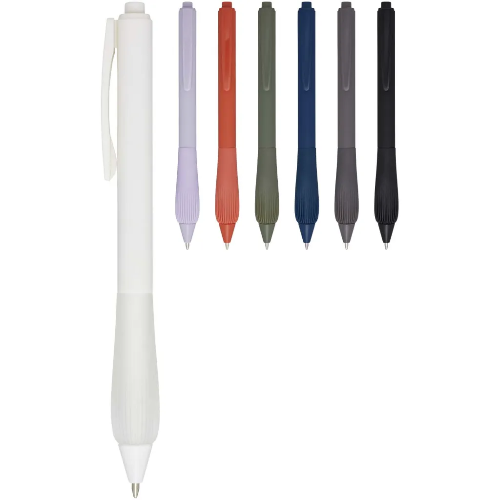 Kemijska olovka od reciklirane plastike s gumiranim cilindrom i ručkom od TPR-a. Boja tinte: crna. Dužina pisanja: 1000 metara. Veličina pera: 1,0 mm.