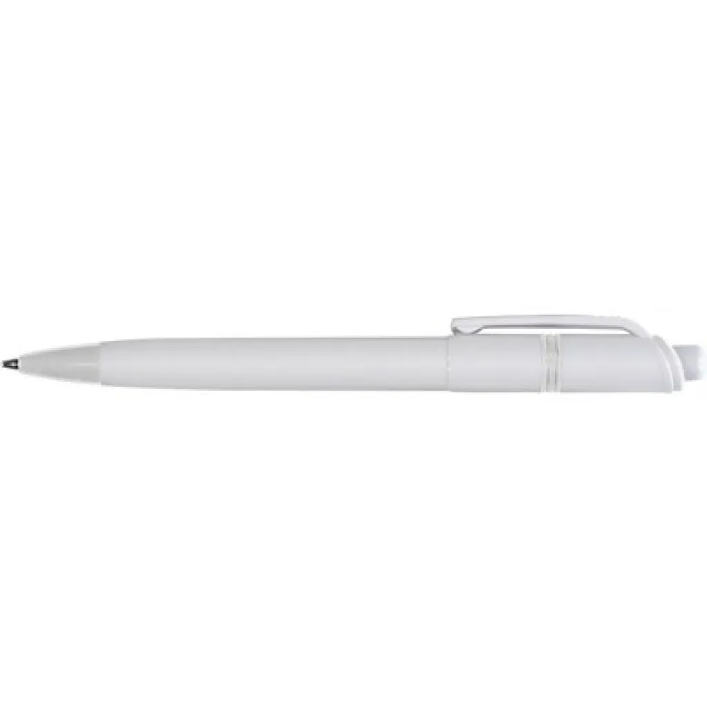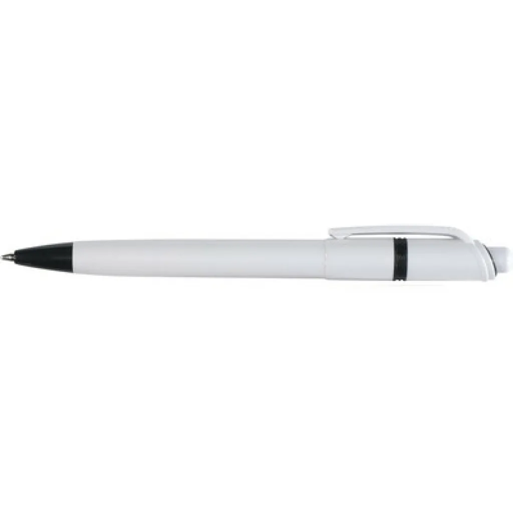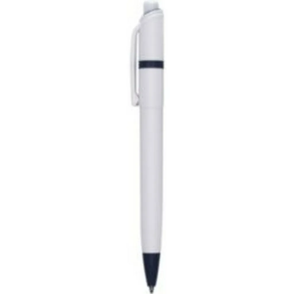 Kemijska olovka Ducal s bijelim tijelom, detaljima u boji i plavom njemačkom Dokumental tintom, proizvod izrađen od ABS-a, plastike, nikla i metala.