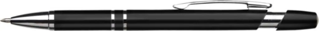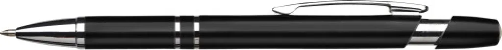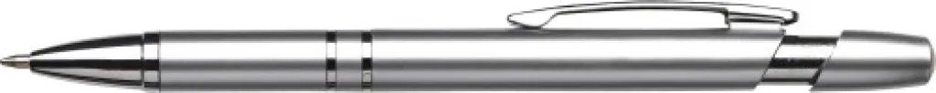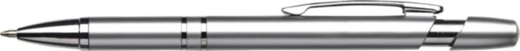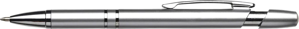 Plastična (ABS) i čelična kemijska olovka metalnog izgleda. Plava tinta.