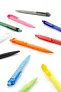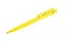 Plastična kemijska olovka s naboranim tijelom i plastičnom klipsom u pripadajućoj boji. Plava tinta.