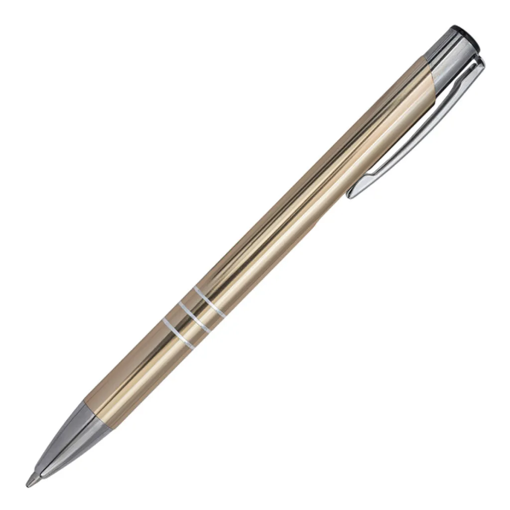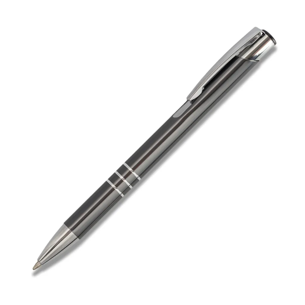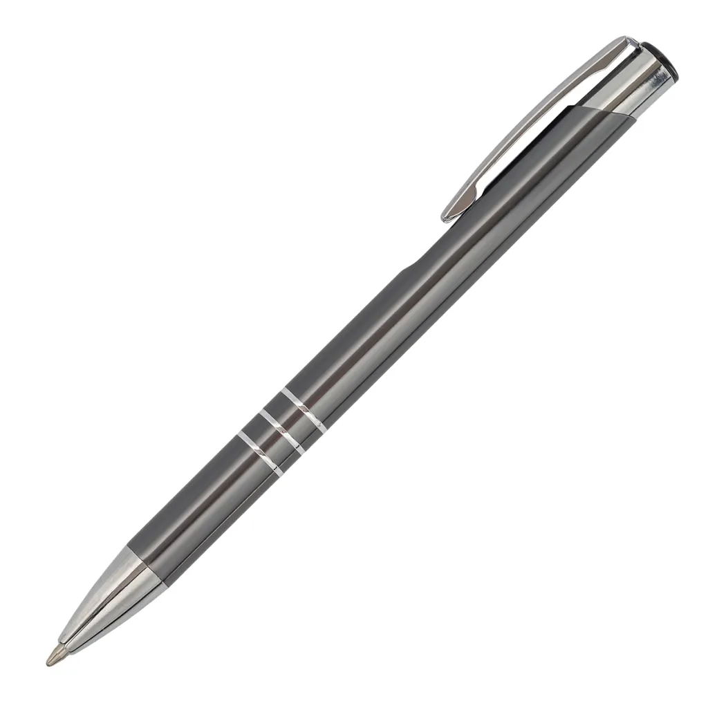 Aluminijska kemijska olovka. Dolazi s plavim punjenjem.