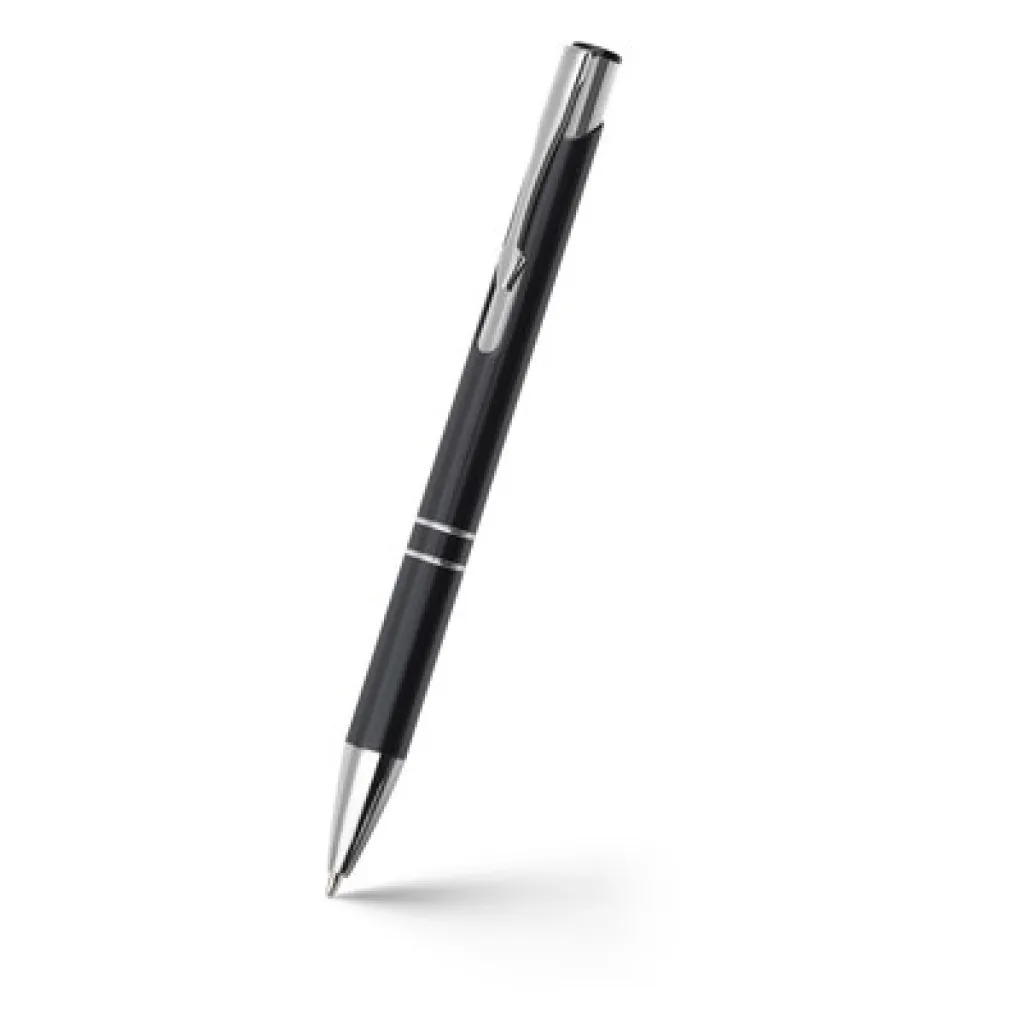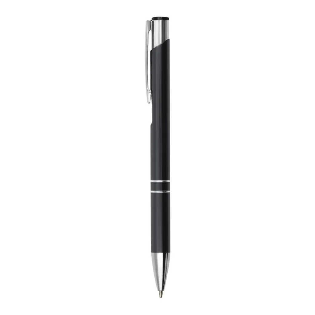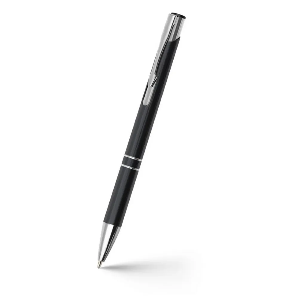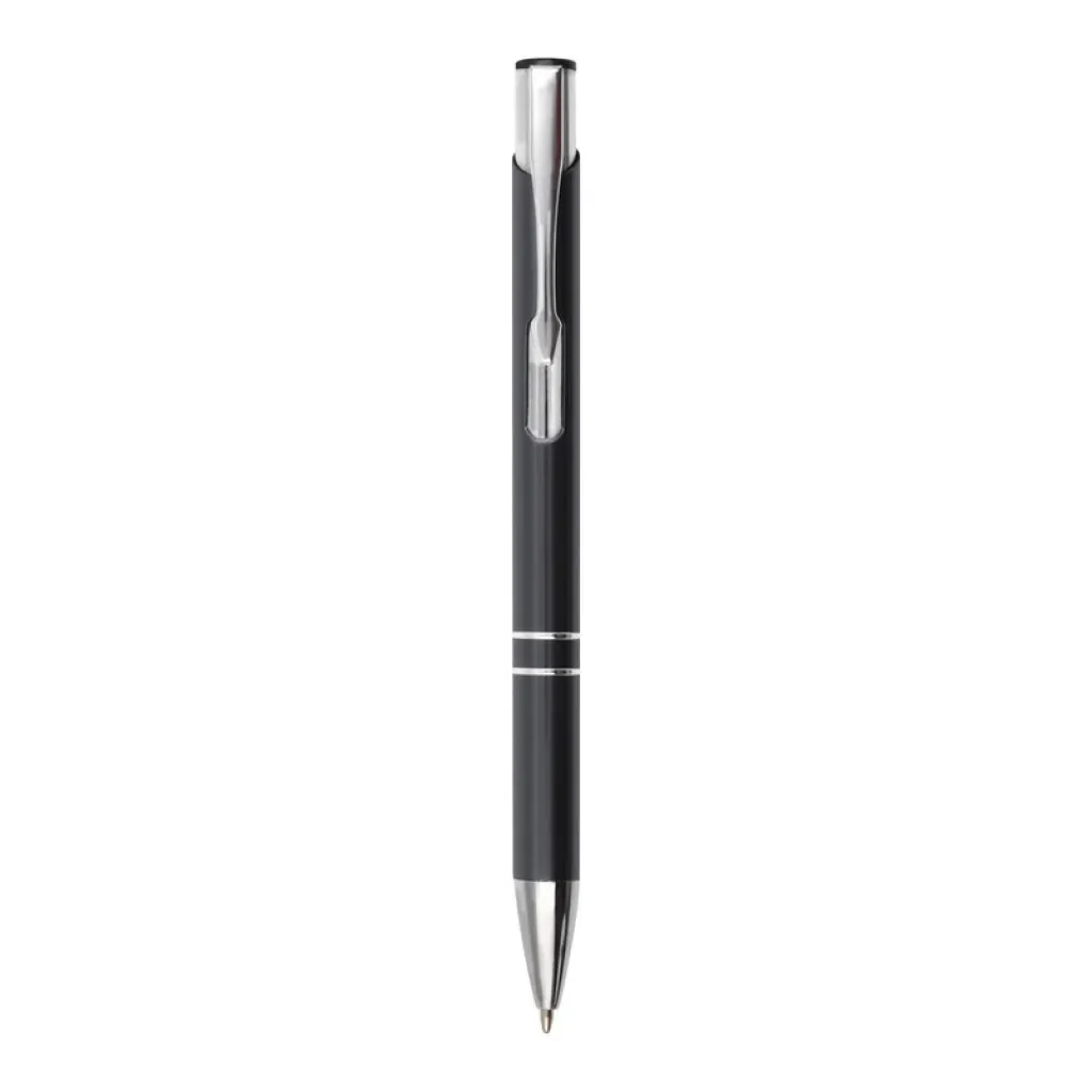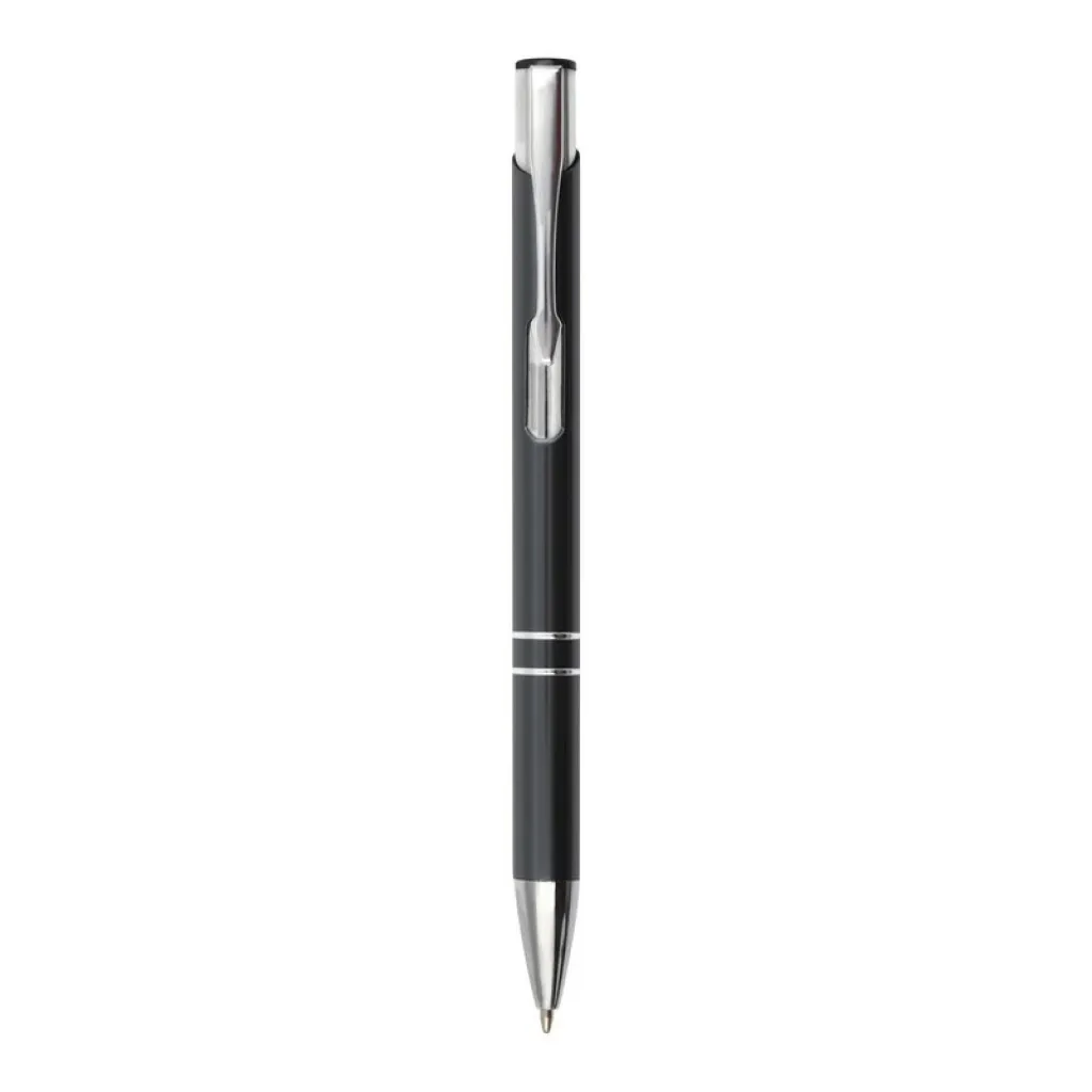 Kemijska olovka s aluminijskom cijevi u boji i srebrnim dijelovima.