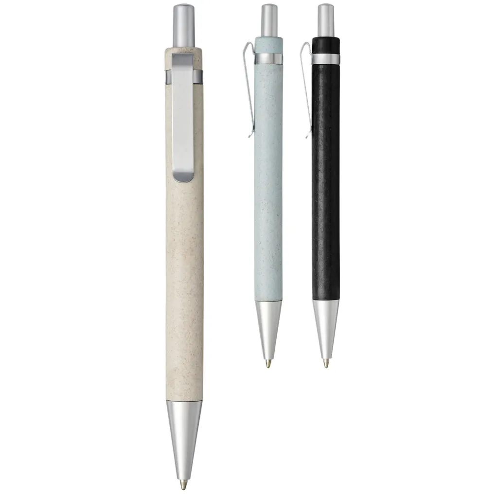 Kemijska olovka modernog stila s pritisnim mehanizmom paljenja, tijelom izrađenim od eko plastike i upečatljivim detaljima u boji kroma. Eko plastika izrađuje se od pšenice što smanjuje količinu upotrijebljene plastike.