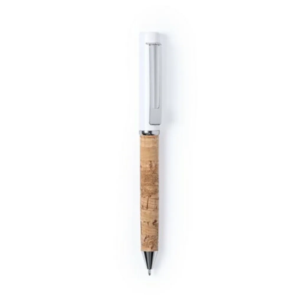 Kemijska olovka s plutenom tijelom i metalnim detaljima.