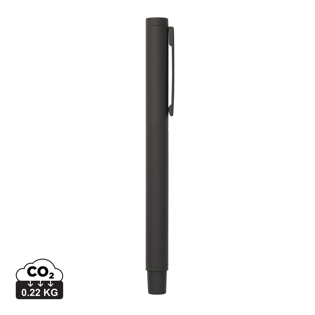 Elegantna i moderna kemijska olovka, izrađena za optimalnu udobnost i stil pisanja. Izrađena od recikliranog nehrđajućeg čelika s RCS certifikatom, ima gumirani površinski premaz za udobno držanje i mat završnu obradu. S posebnim poklopcem i kopčom za džep, ova kemijska olovka nudi funkcionalnost i eleganciju. Tanak vrh (1,0 mm) osigurava glatko pisanje, dok njegova udobna težina pruža stabilnost za pisanje bez napora. Kemijska olovka s plavom tintom i kapacitetom pisanja od 1200 metara, savršena je za sve vaše potrebe pisanja. Certificirana od strane RCS (Recycled Claim Standard). RCS certifikat jamči da je cijeli opskrbni lanac recikliranih materijala certificiran. Ukupni reciklirani sadržaj temelji se na ukupnoj težini proizvoda. Ovaj proizvod sadrži 19% recikliranog nehrđajućeg čelika s RCS certifikatom. Pakirano u razgradivoj ambalaži.