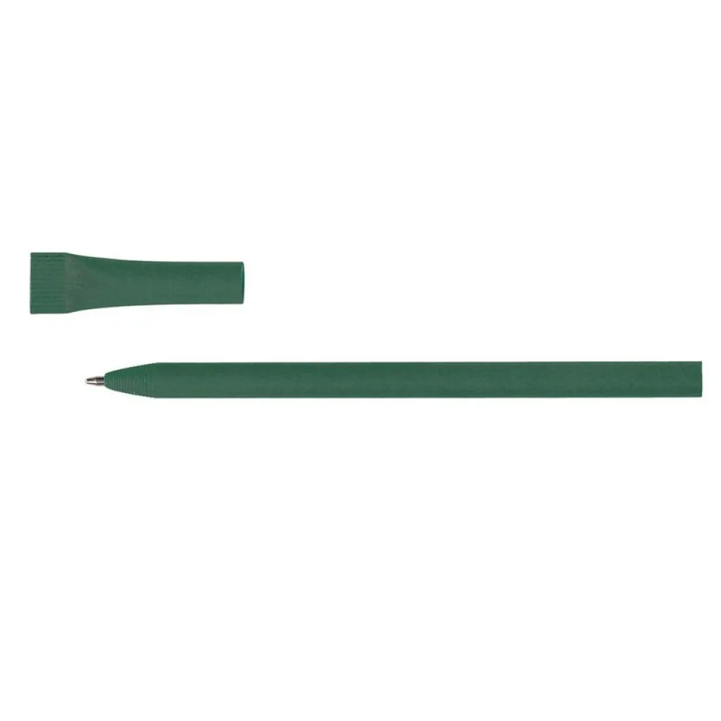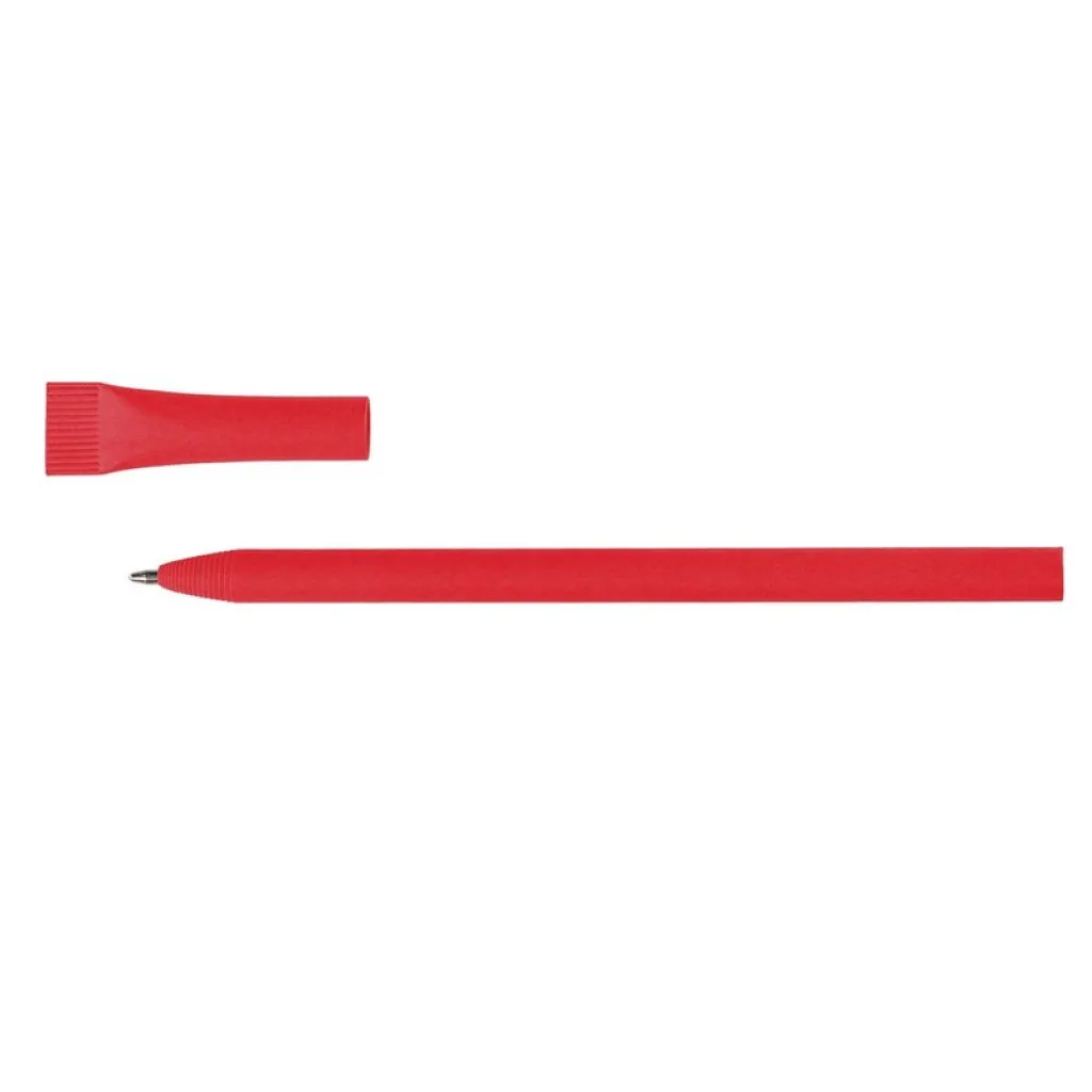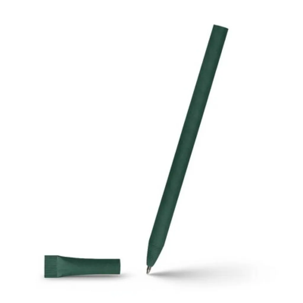 Kemijska olovka od smotanog papira, poklopac iste boje, izrezan završetak.