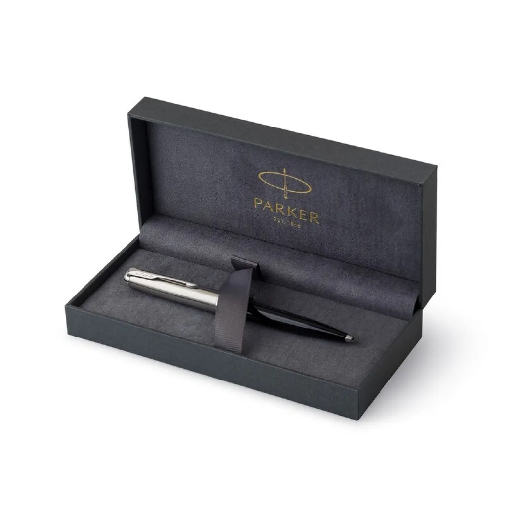Kemijska olovka Parker 51. Crna tinta. Pakirana u poklon kutiji. Proizvod izrađen od metala i nehrđajućeg čelika.