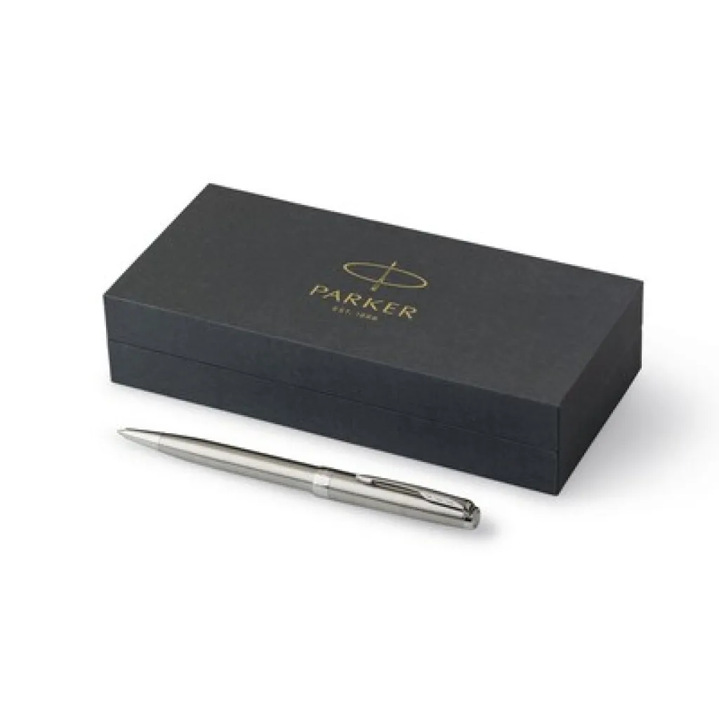 Kemijska olovka Parker Sonnet sa klik mehanizmom i crnom tintom, pakirana u poklon kutiji. Proizvod od metala i nehrđajućeg čelika.