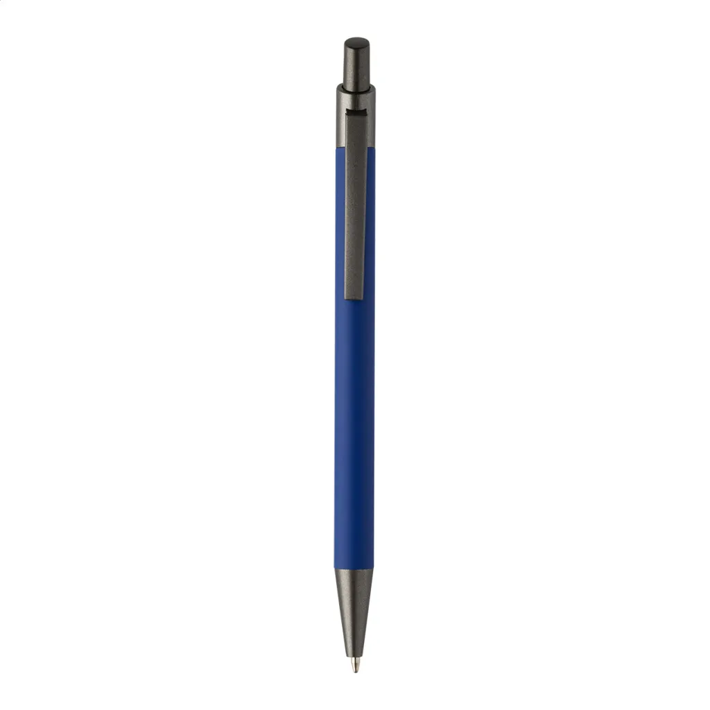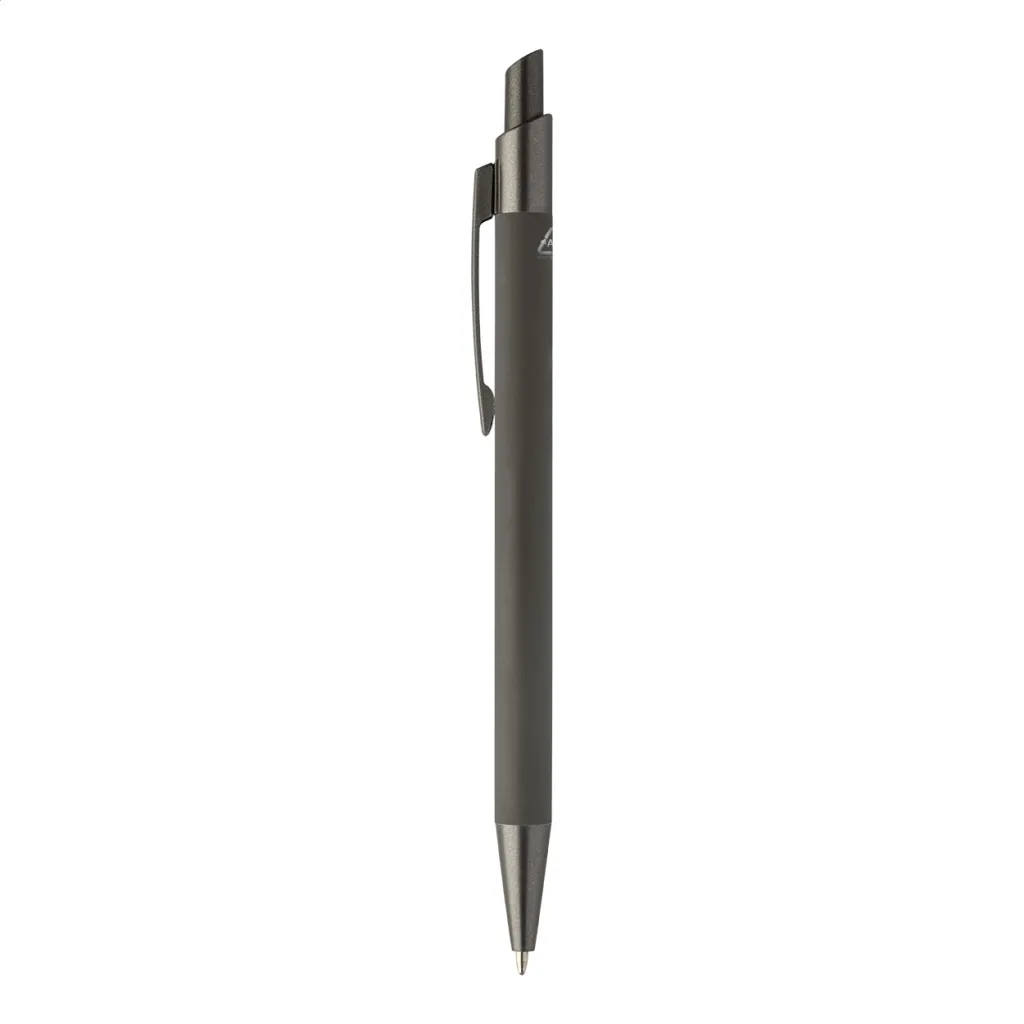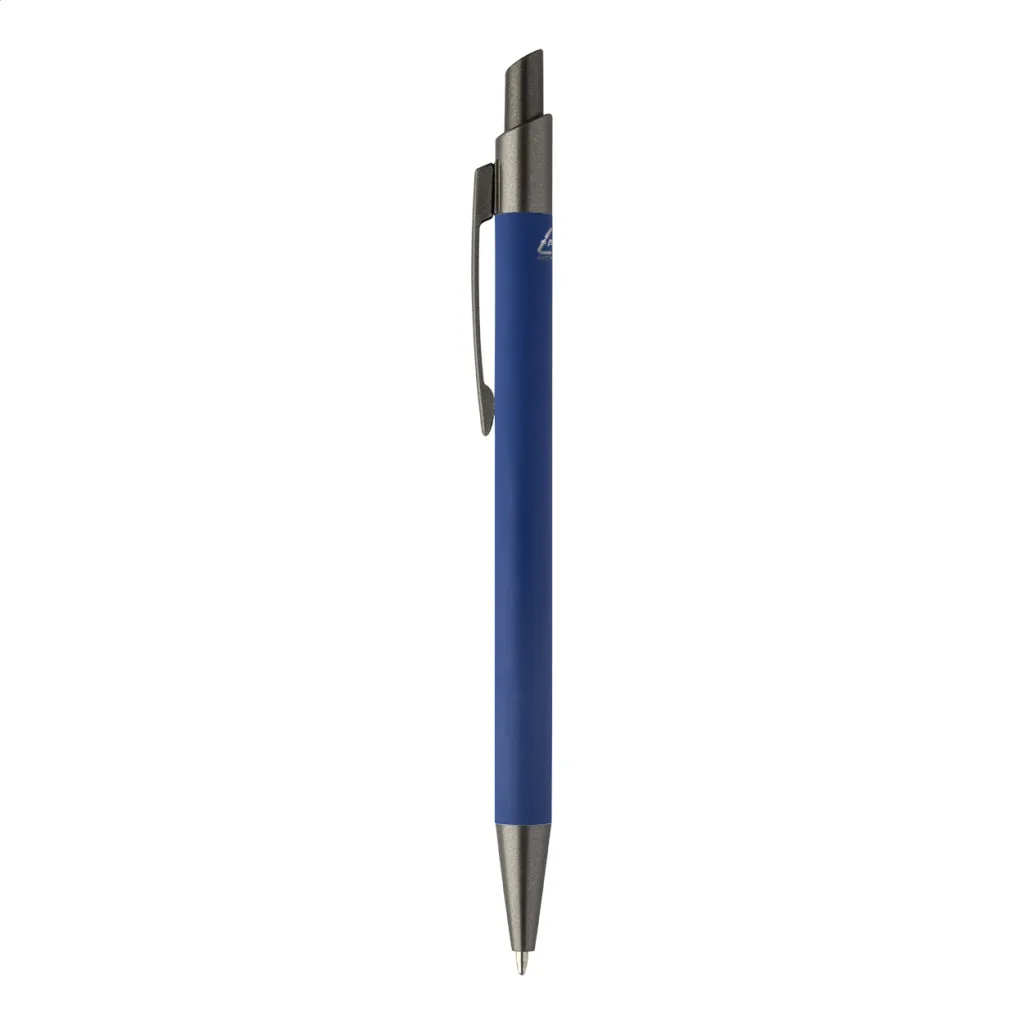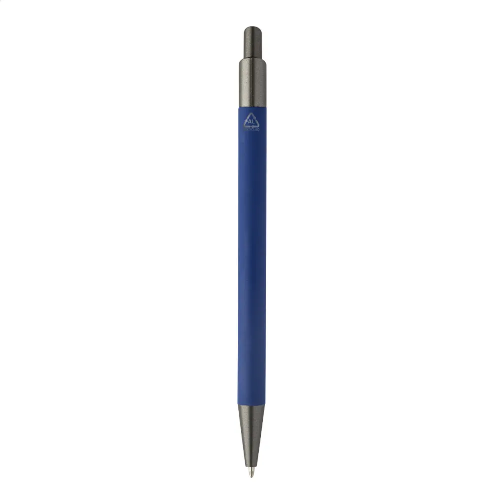 Kemijska olovka od recikliranog aluminija s gumiranim tijelom i završnim dijelovima od bronze. S plavim punjenjem.