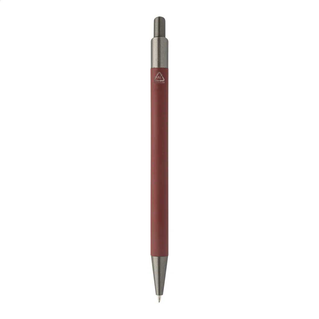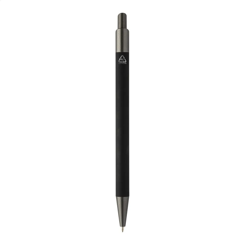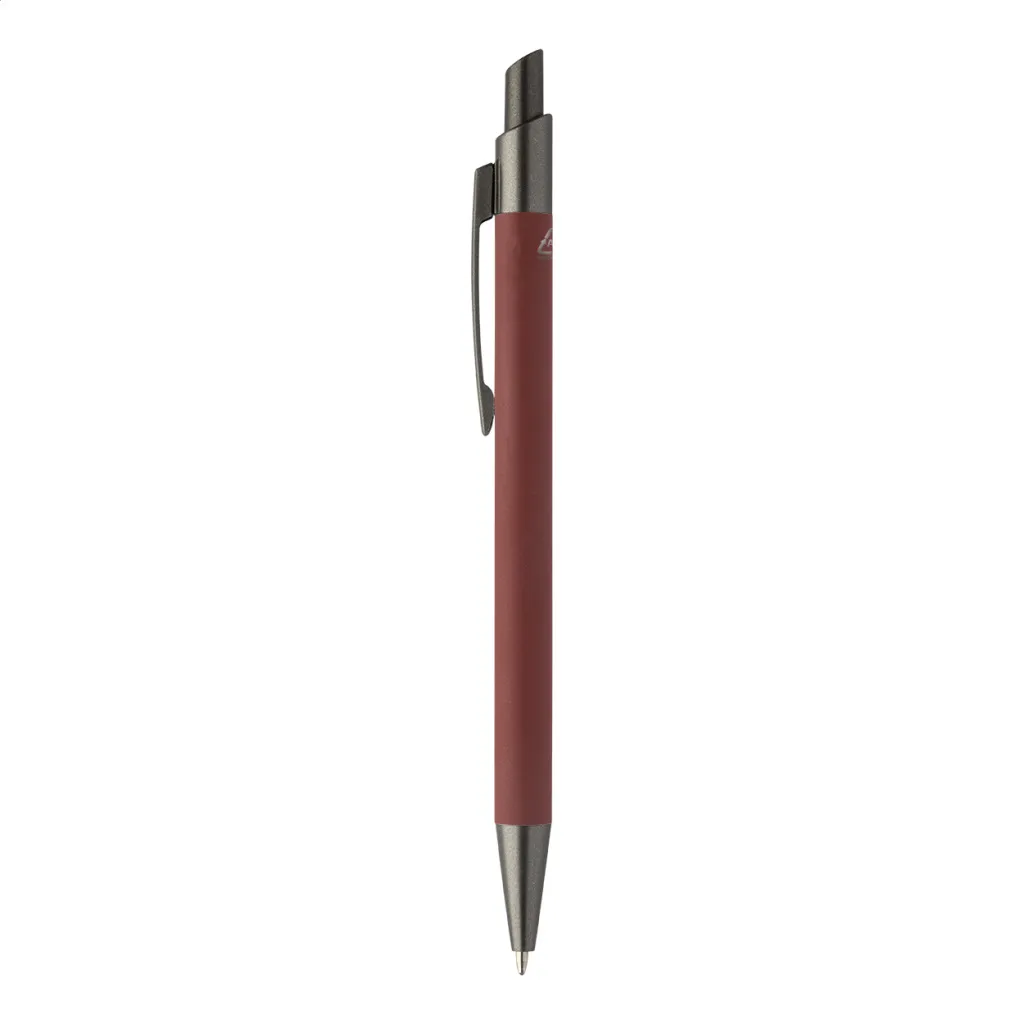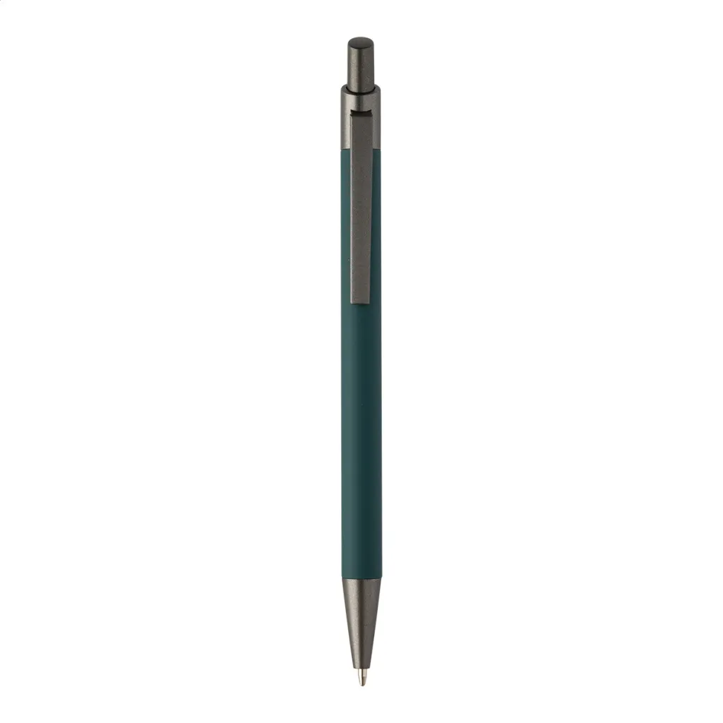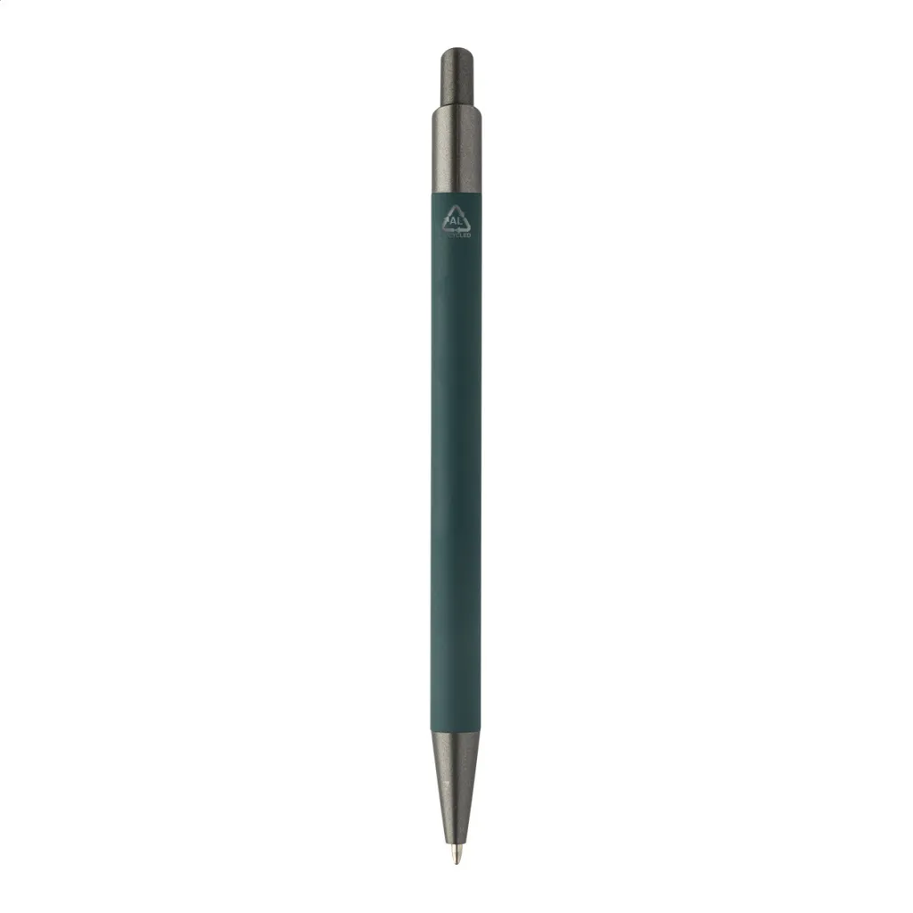 Kemijska olovka od recikliranog aluminija s gumiranim tijelom i završnim dijelovima od bronze. S plavim punjenjem.
