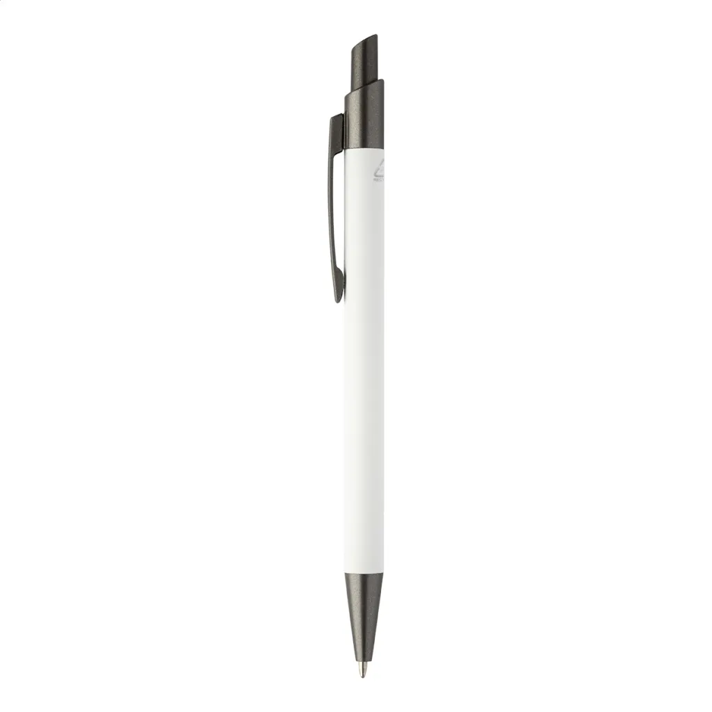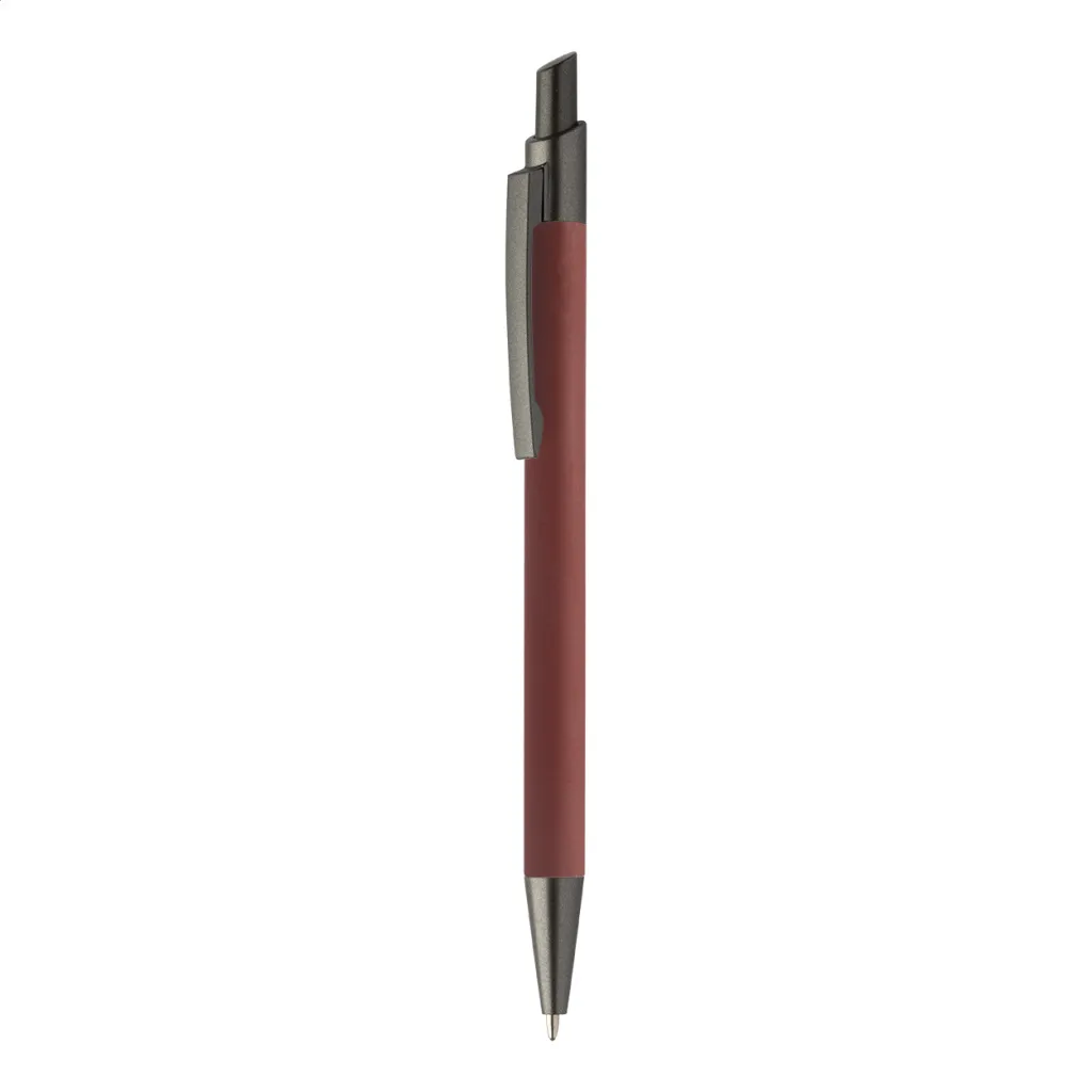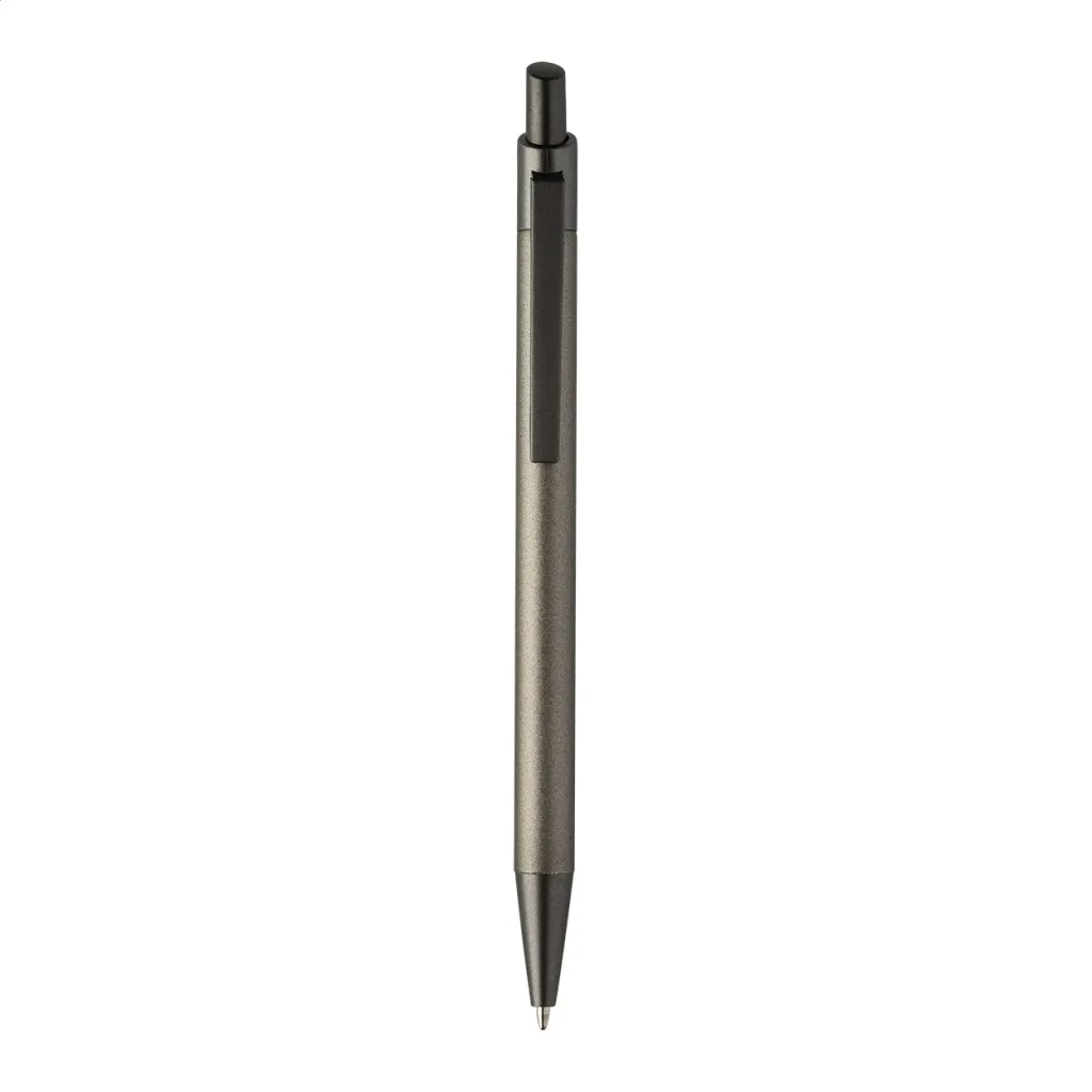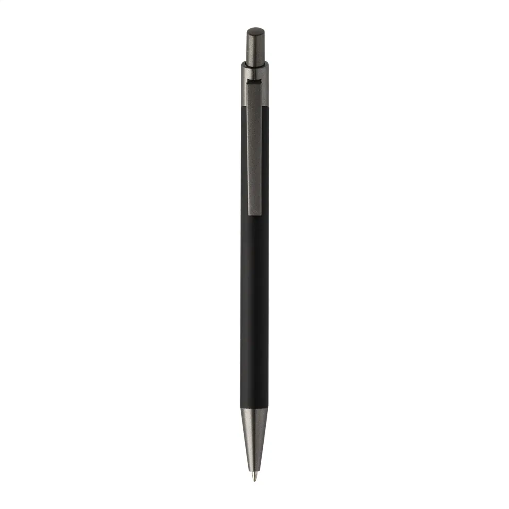 Kemijska olovka od recikliranog aluminija s gumiranim tijelom i završnim dijelovima od bronze. S plavim punjenjem.