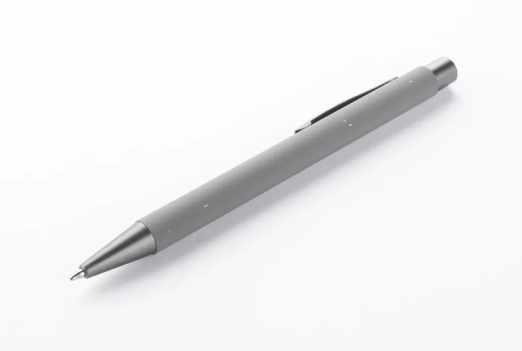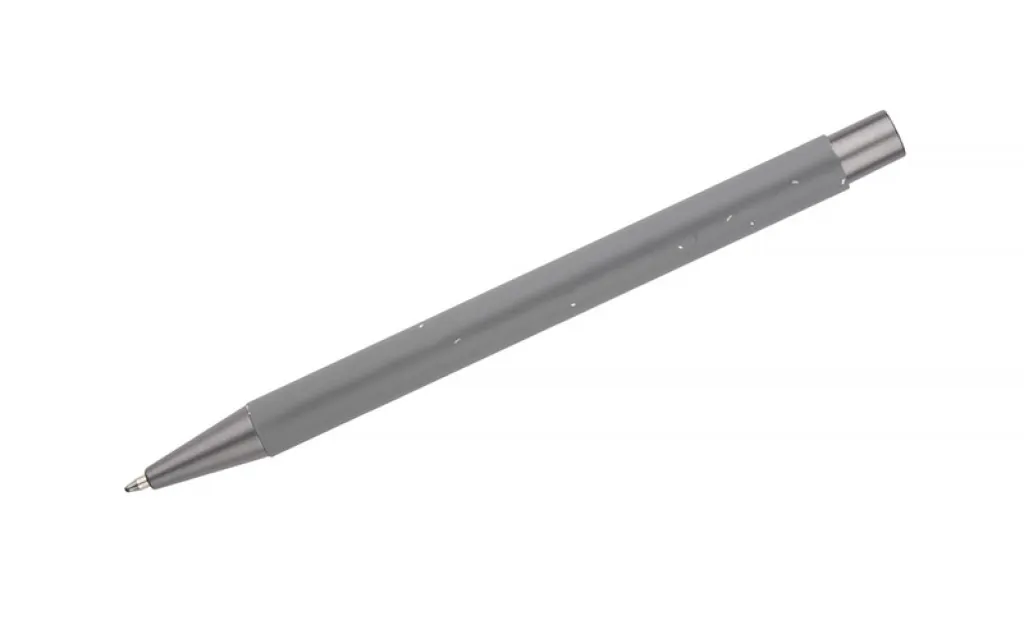 Ova kemijska olovka kombinira jednostavan dizajn s gumiranom površinom za ugodan osjećaj u ruci. Čitav proizvod predstavljen je u svjetlim, matiranim bojama. Napravljena od aluminija s grafitnom završnom obradom. Crna tinta.