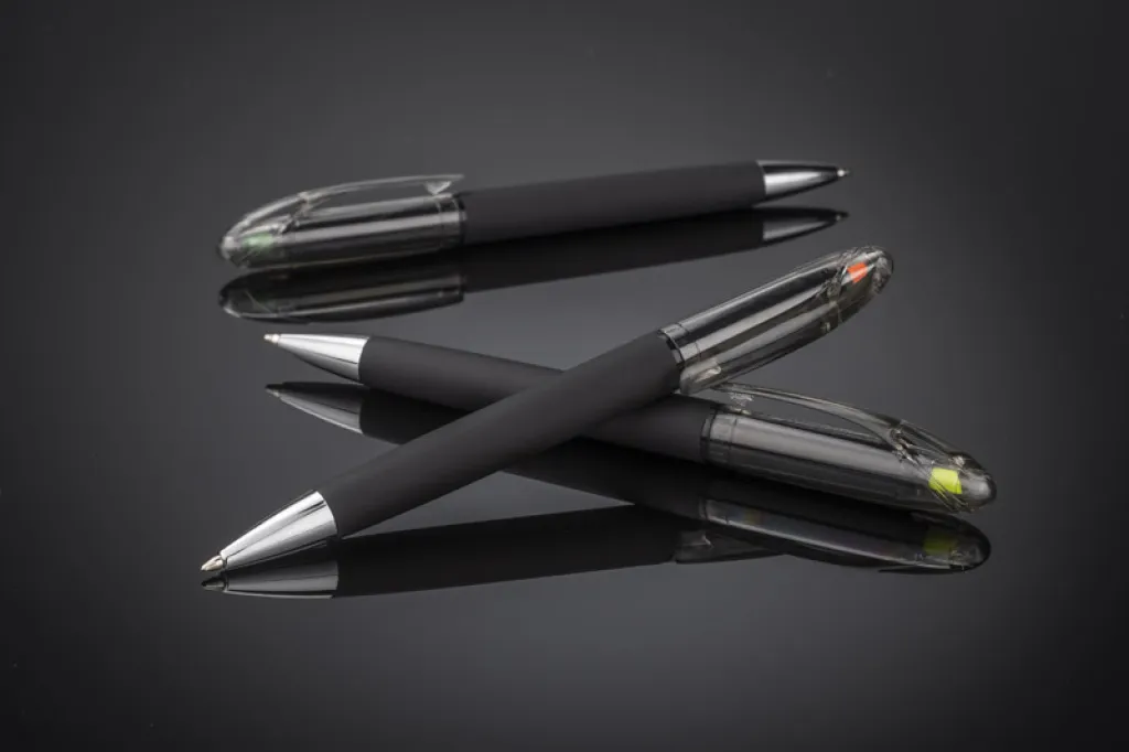 HILIG su dvije korisne naprave u jednom. Na vrhu tradicionalne kemijske olovke nalazi se označivač jarkih boja. Tijelo kemijske olovke prekriveno je gumenim premazom i glatko je i ugodno na dodir. Olovka s mehanizmom na uvijanje, punjenje tinte plave boje.