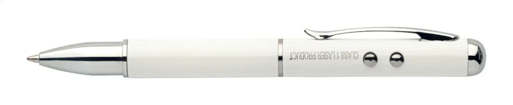 Multifunkcionalni laserski pokazivač sa kemijskom olovkom, led lampicom i touch funkcijom. Isporučuje se u metalnoj poklon kutiji sa baterijama i plavim refilom.