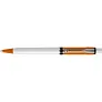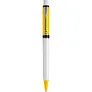 Kemijska olovka Stilolinea Norina s bijelim tijelom, detaljima u boji i metalnom kopčom. Plava tinta. Izrađena od ABS plastike, nikla i metala.