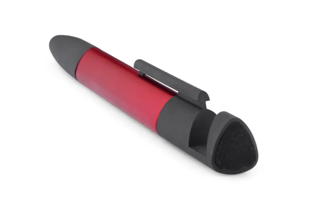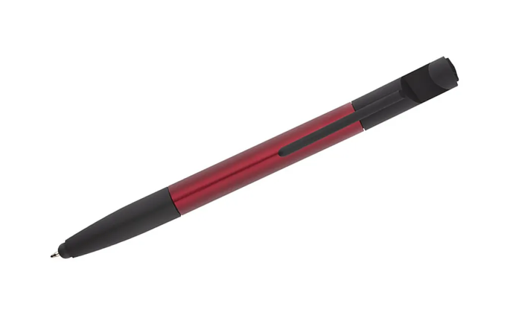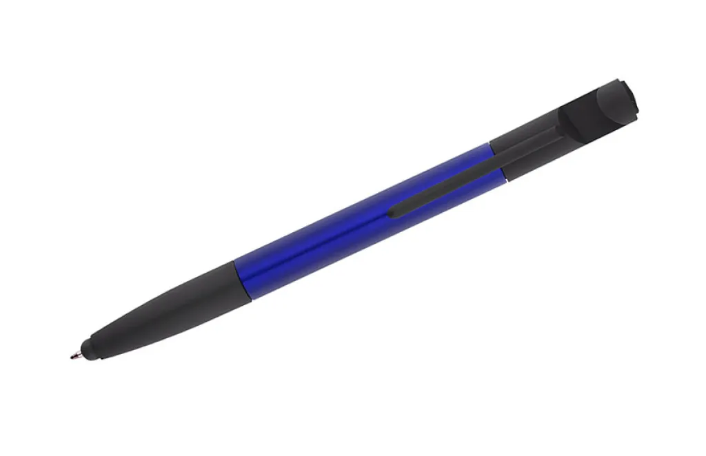 Ova praktična kemijska olovka malog formata ima čak 8 funkcija: kemijska olovka, olovka za ekrane osjetljive na dodir, čistač ekrana, držač mobitela, 2 odvijača, 2 ravnala (centimetri i inči). Napravljena je od plastike i ima mehanizam na okretanje. X20 type plava tinta.