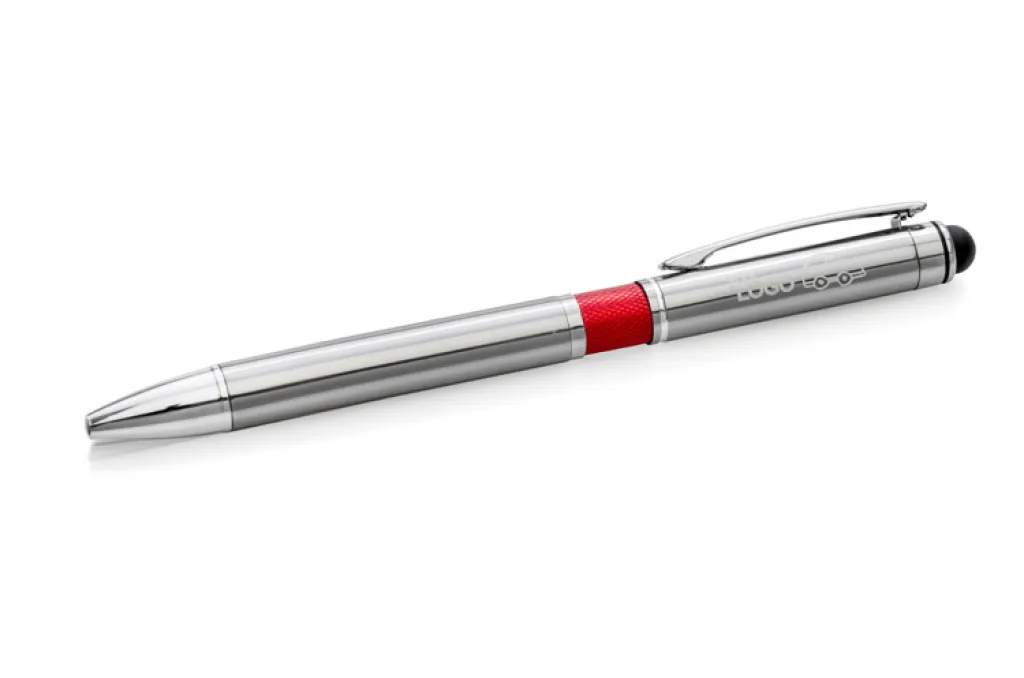 Elegantna metalna kemijska olovka s uzorkom u boji i nastavkom za ekrane osjetljive na dodir.