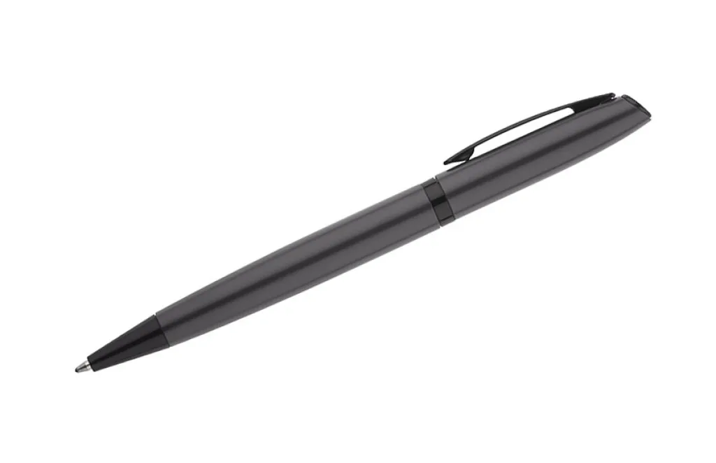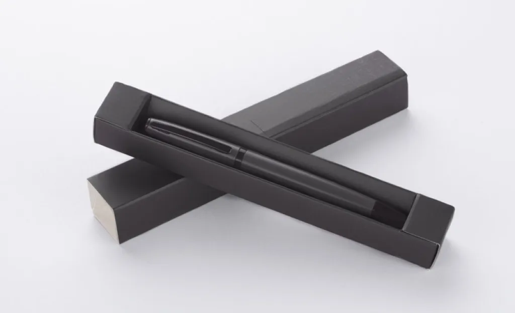 Elegantna kemijska olovka pakirana u papirnatu kutiju iste boje kao i olovka. Mat boja je u lijepom kontrastu s crnim elementima. Okretni mehanizam i G2 type plava tinta.