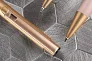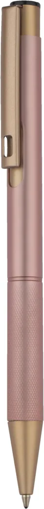 Elegantna kemijska olovka izrađena od aluminija sa zlatnim završnim dijelovima. Polu-gel plavo punjenje.