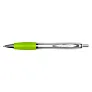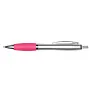 Kemijska olovka s drškom mekanog osjećaja i srebrnom cijevi.
