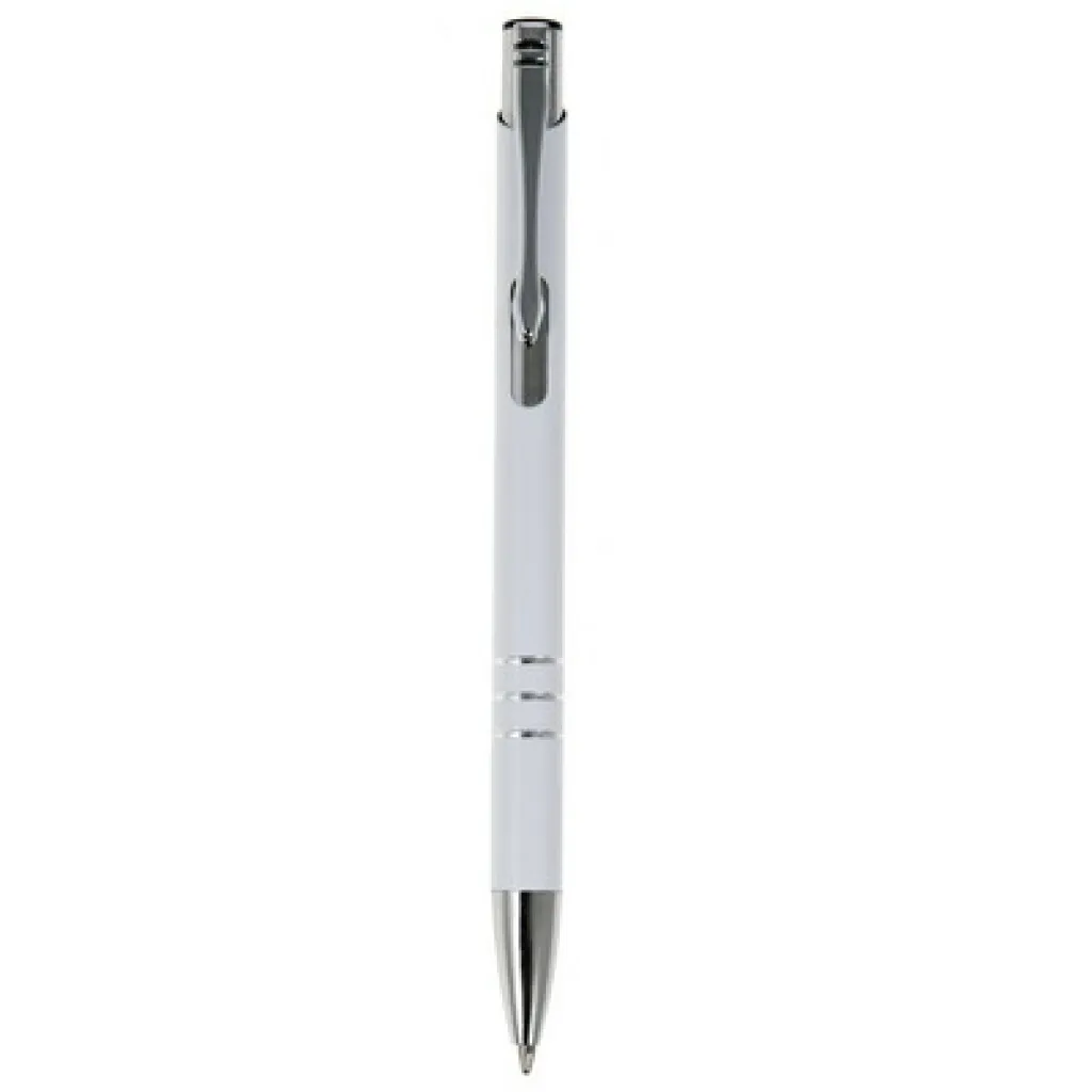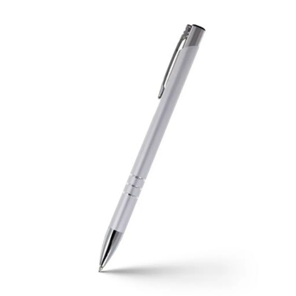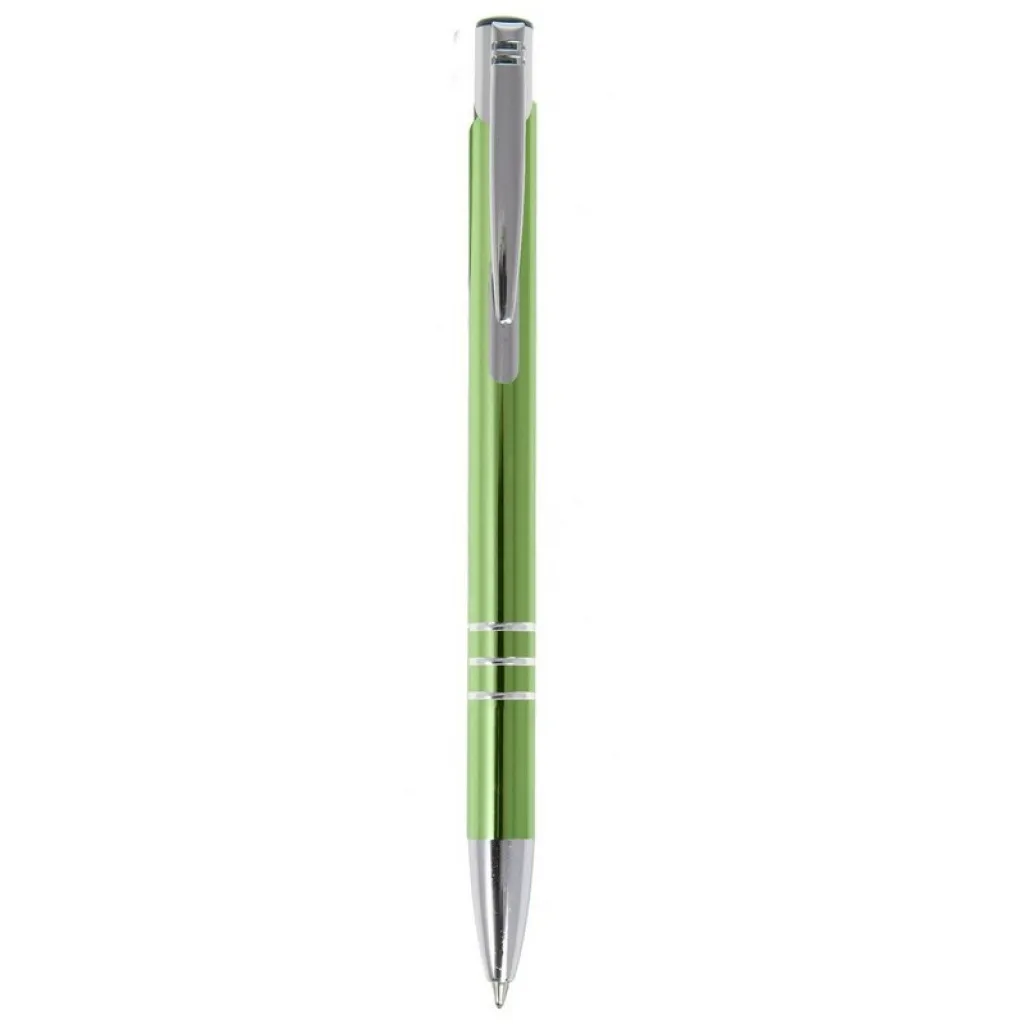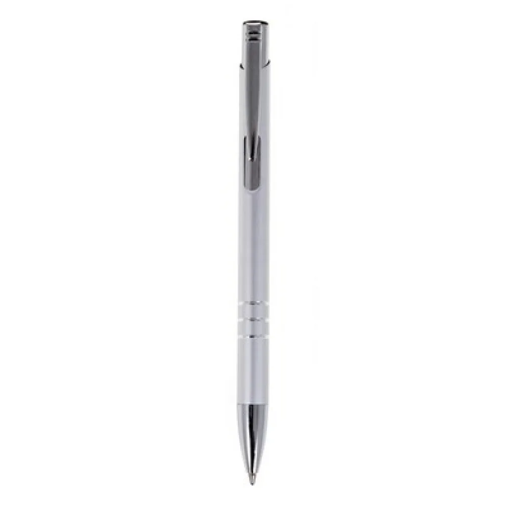 Kemijska olovka s cijevi u boji i srebrnim dijelovima.