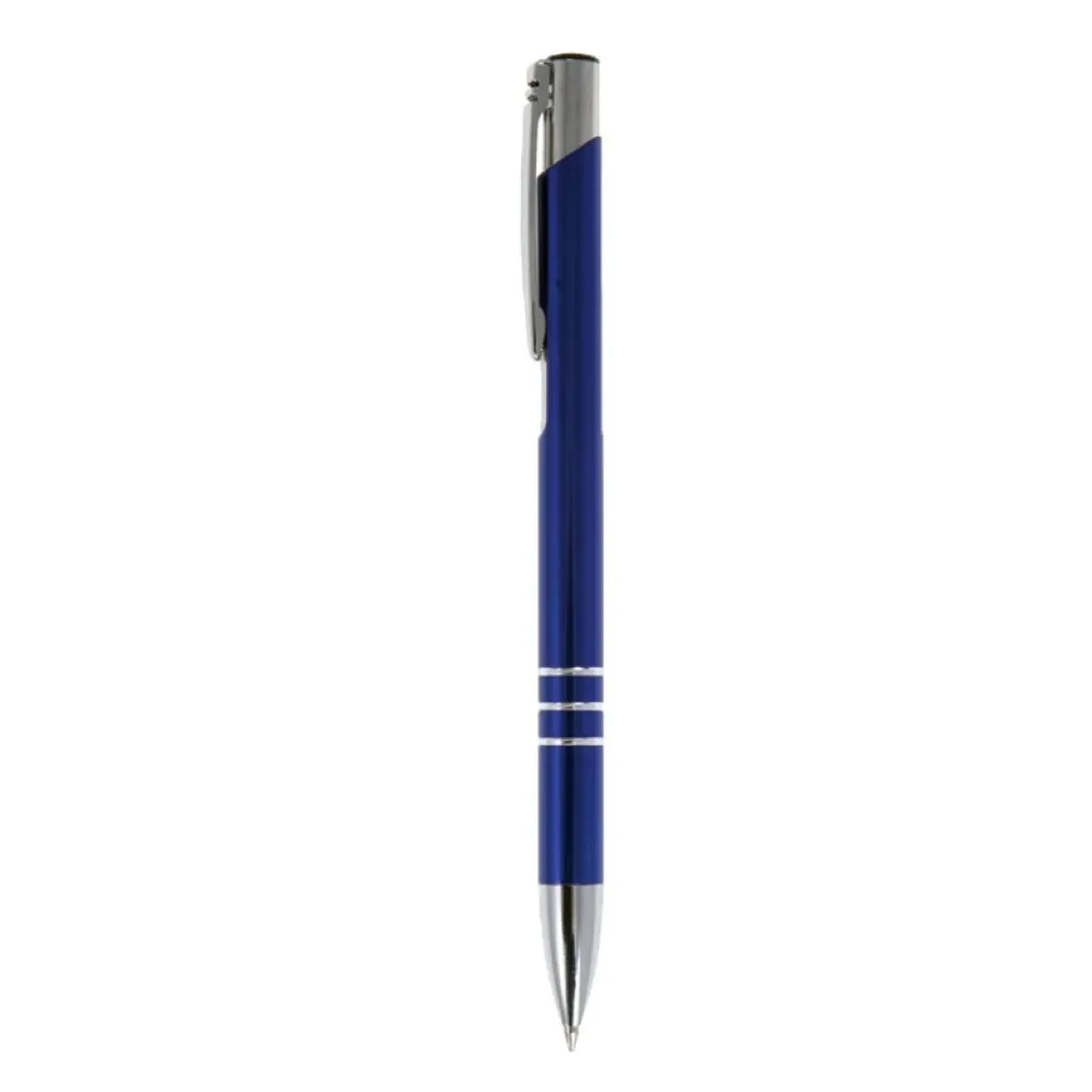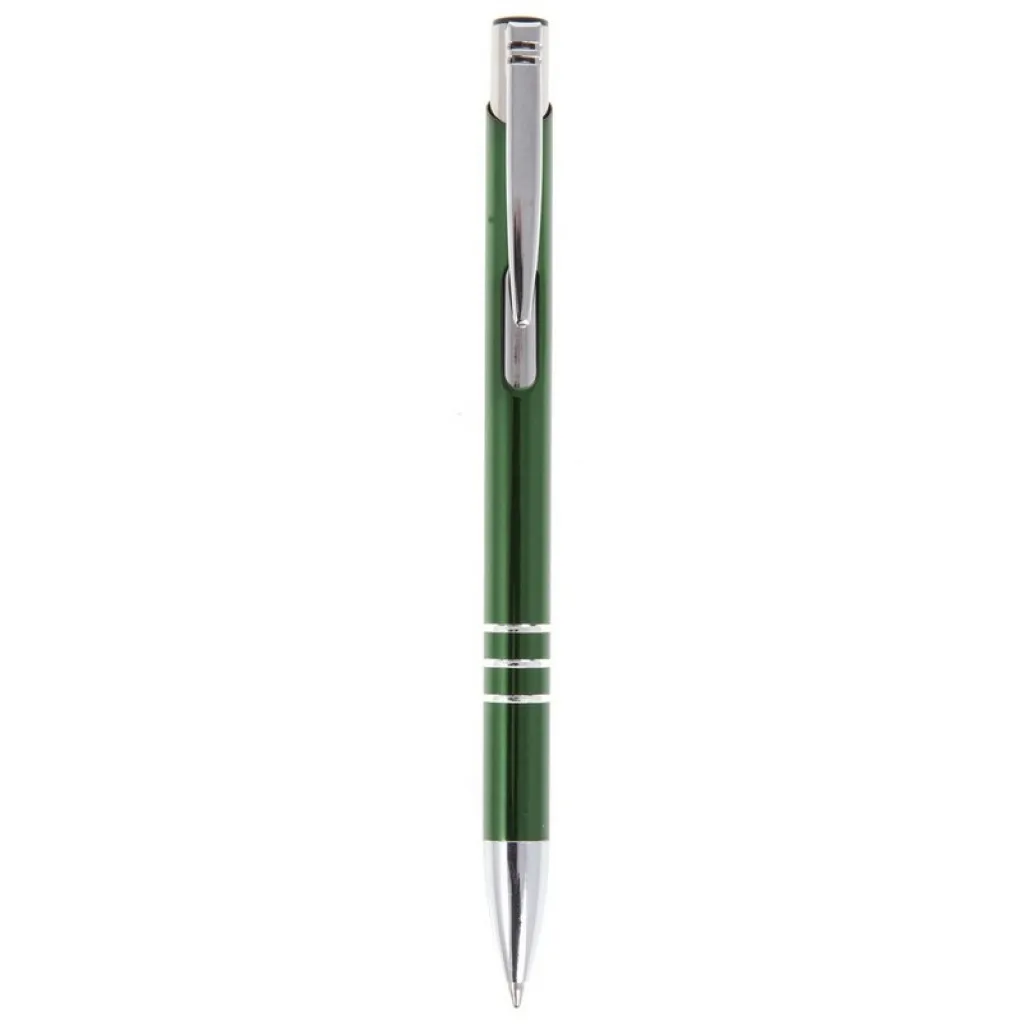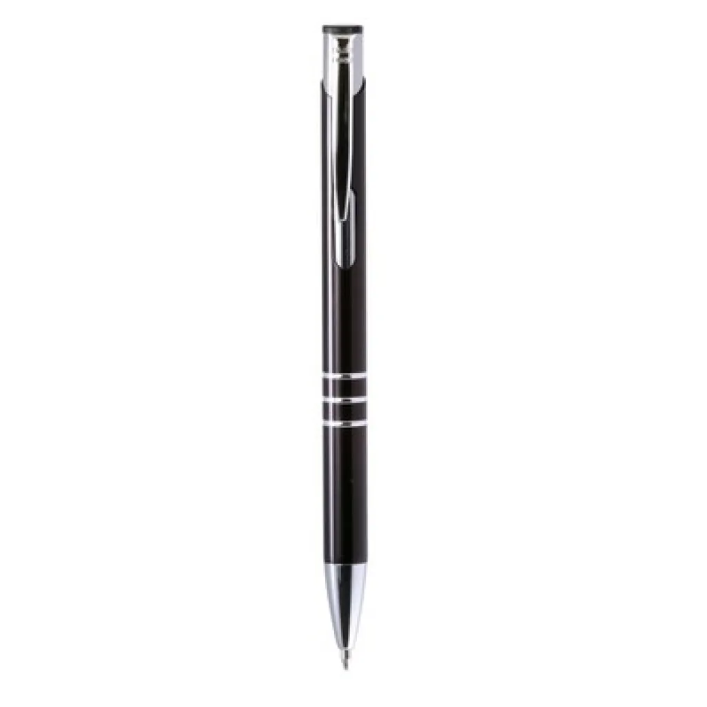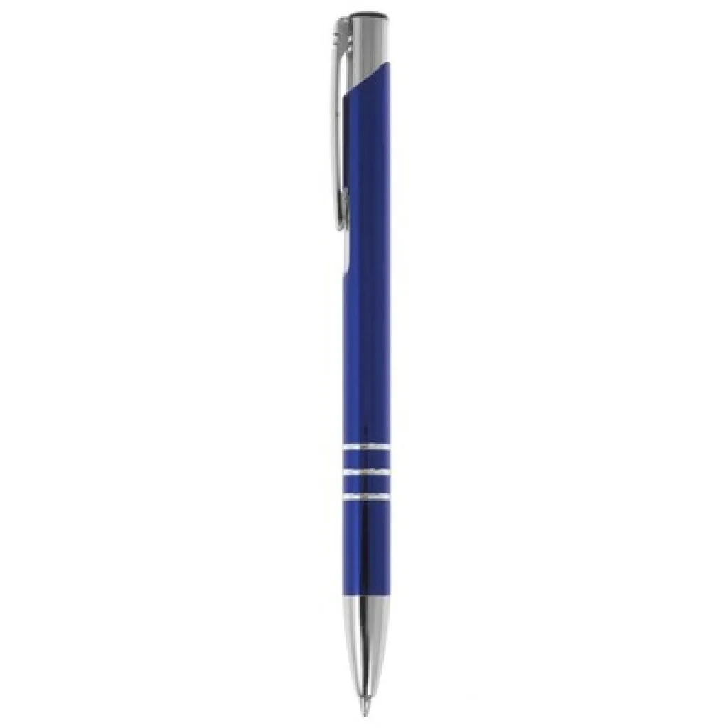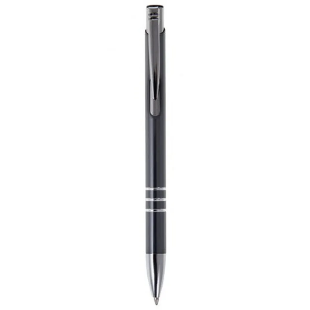 Kemijska olovka s cijevi u boji i srebrnim dijelovima.