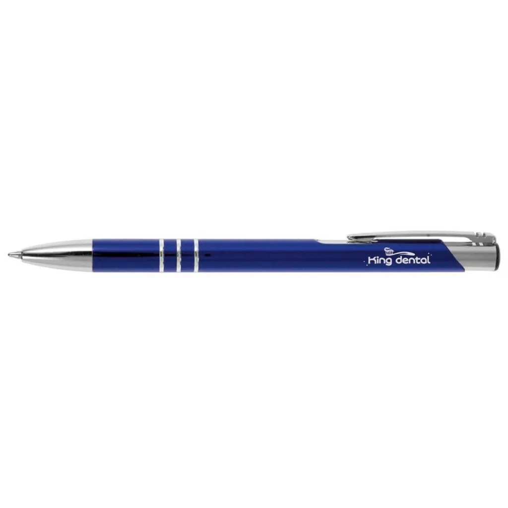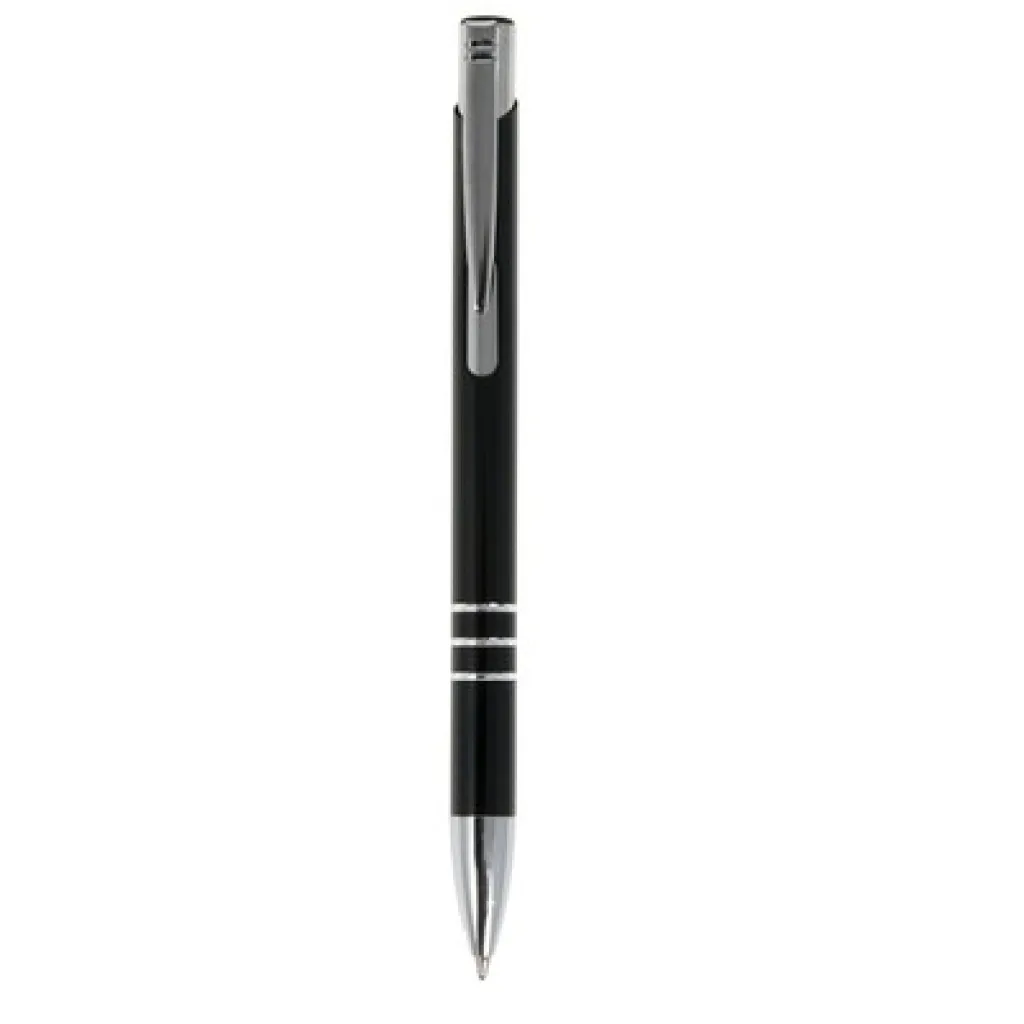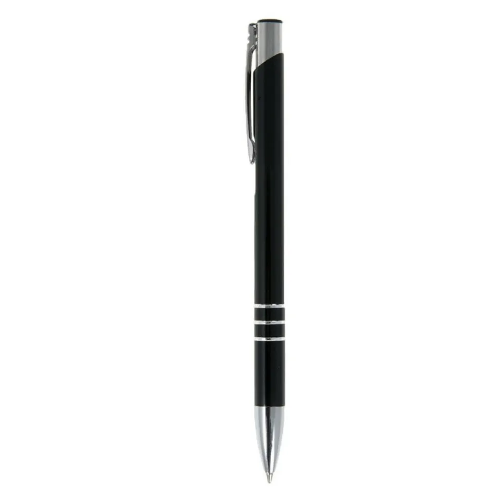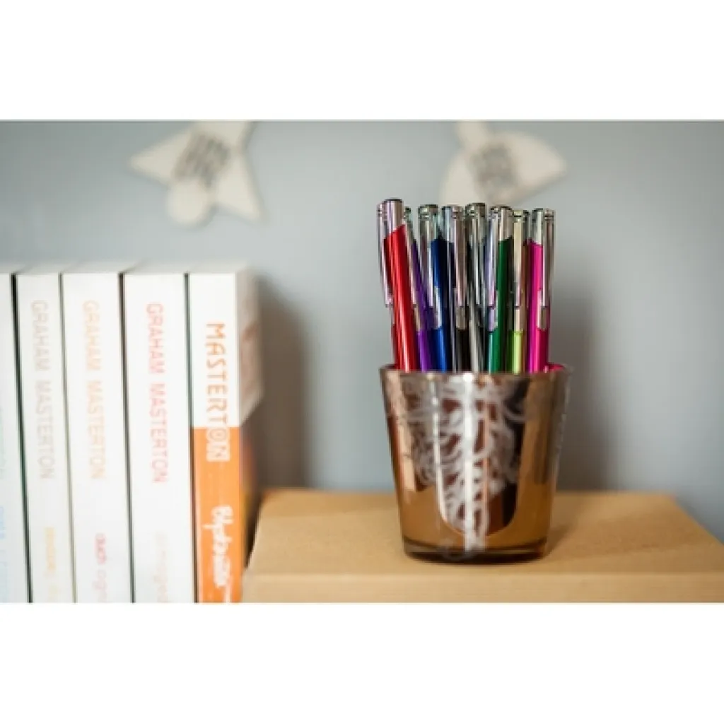 Kemijska olovka s cijevi u boji i srebrnim dijelovima.