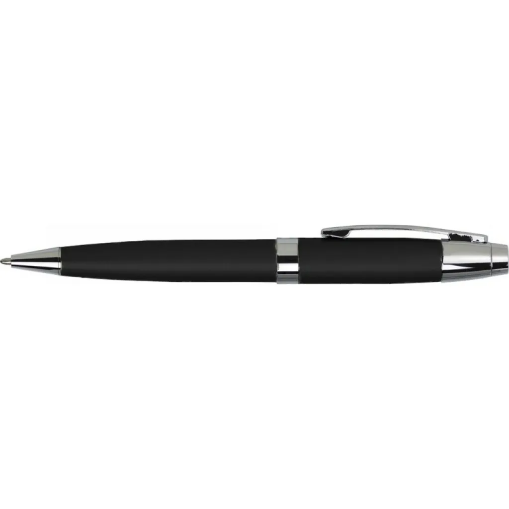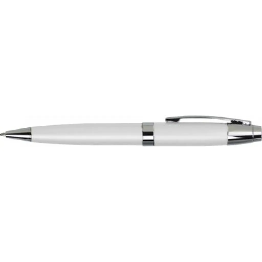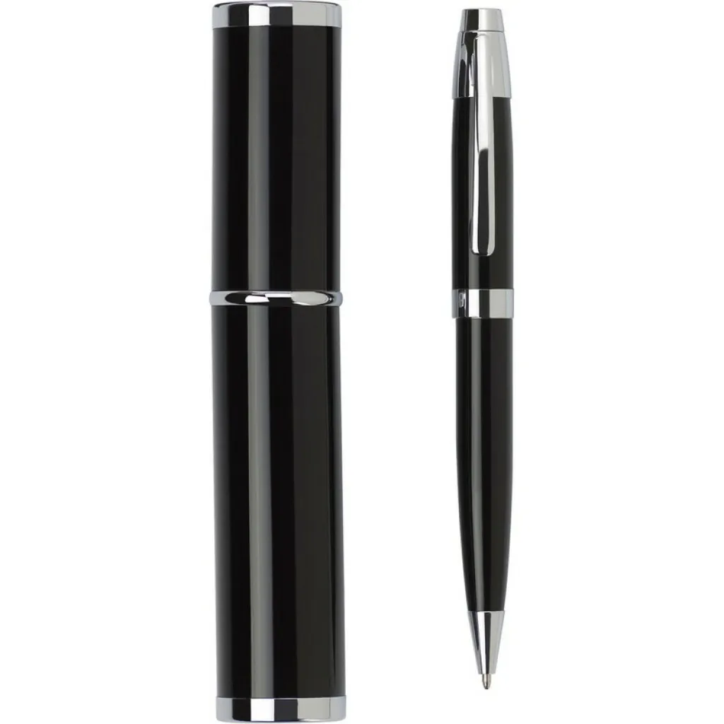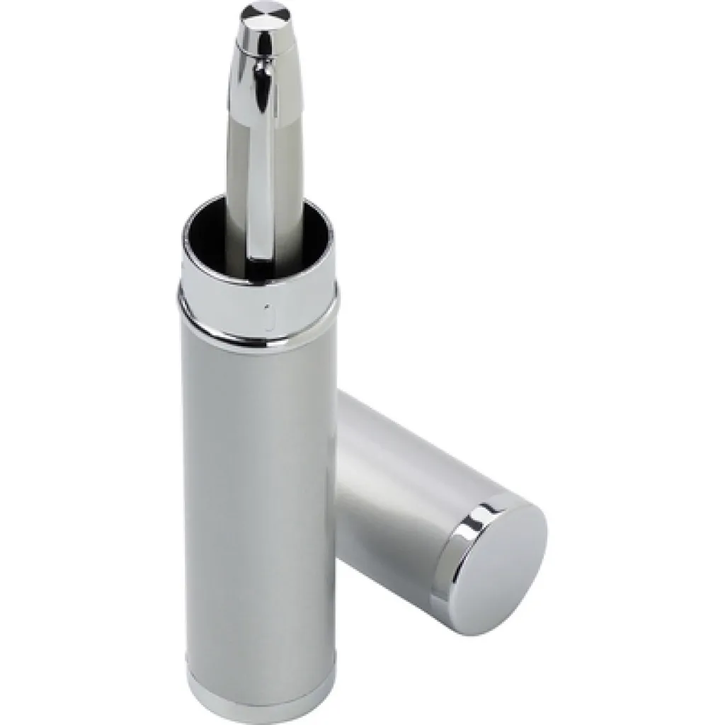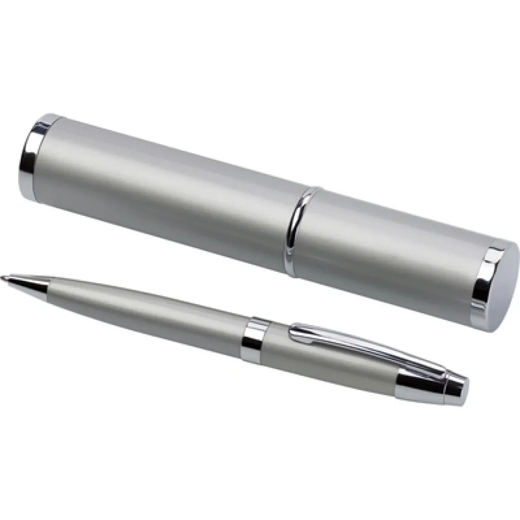 Kemijska olovka sa srebrnim detaljima, dolazi u odgovarajućoj kutijici u obliku cijevi.