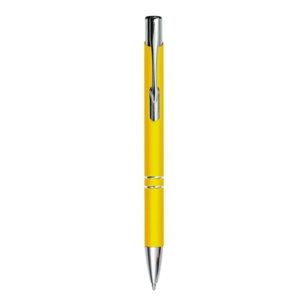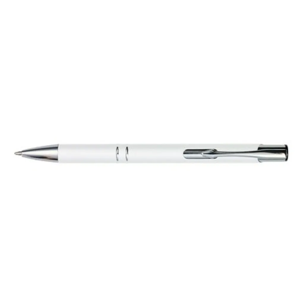 Kemijska olovka s gumiranom završnom obradom i sa srebrnim detaljima, zrcalna površina nakon graviranja.