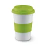 Keramička putna šalica s jednostrukom stjenkom, silikonskim poklopcem i omotačem. Kapacitet 400ml. Nije pogodno za upotrebu u mikrovalnoj pećnici. Keramički transfer otisak je siguran u perilici posuđa. Kako se radi o jednozidnoj šalici prijenos topline se i dalje može dogoditi.