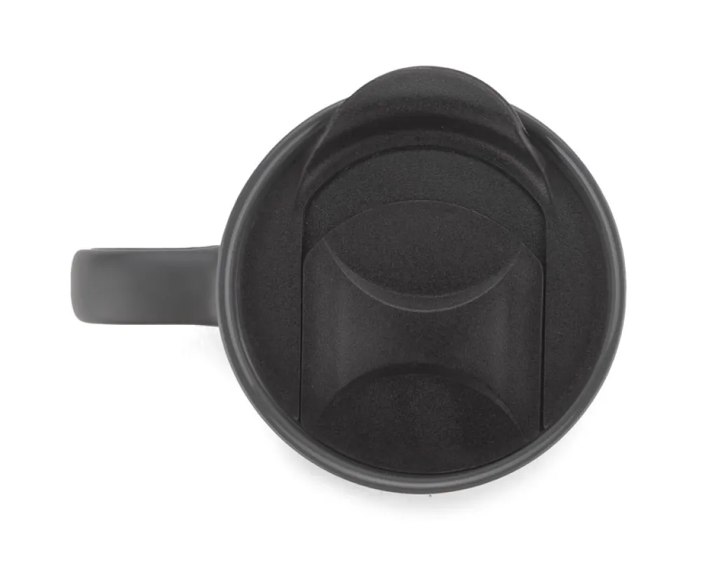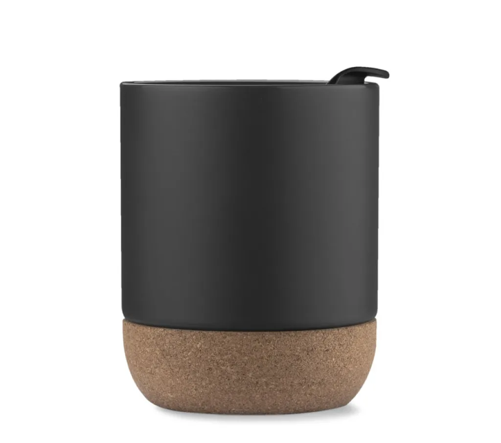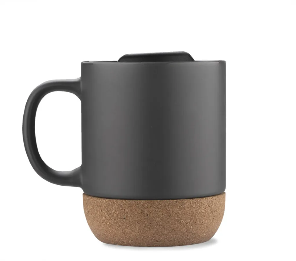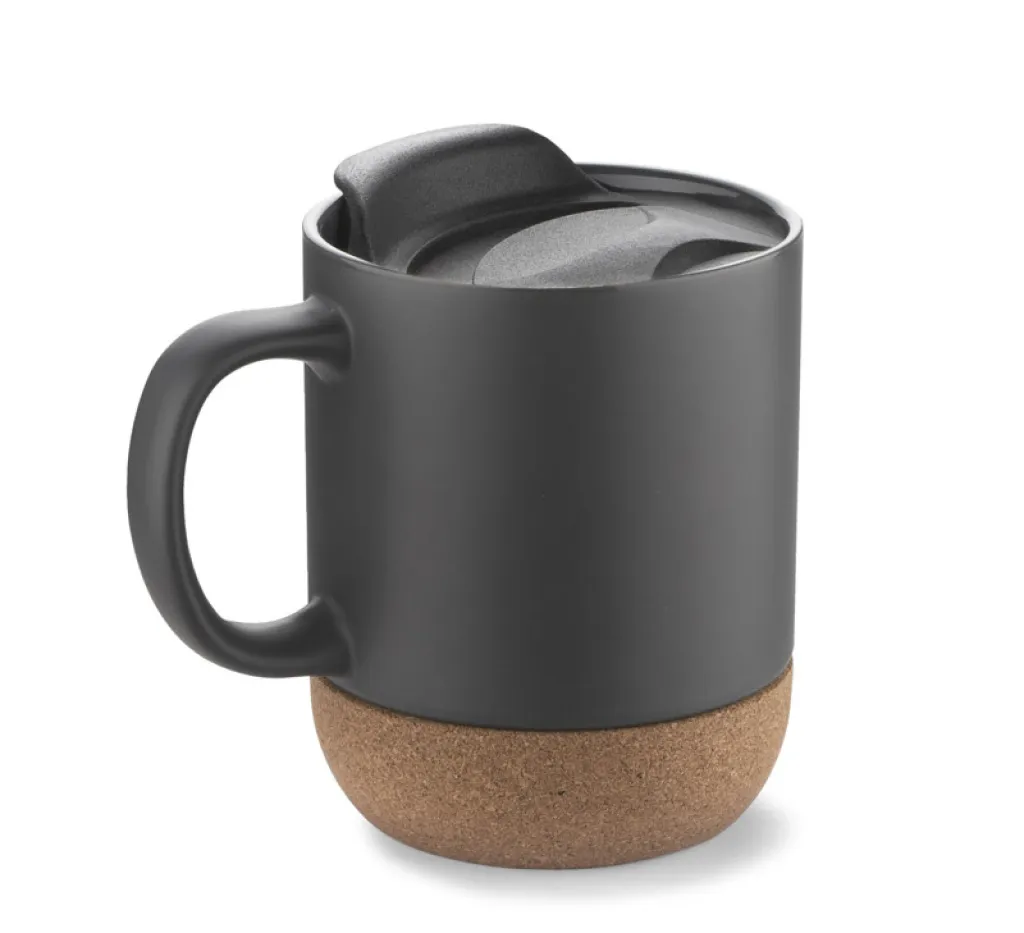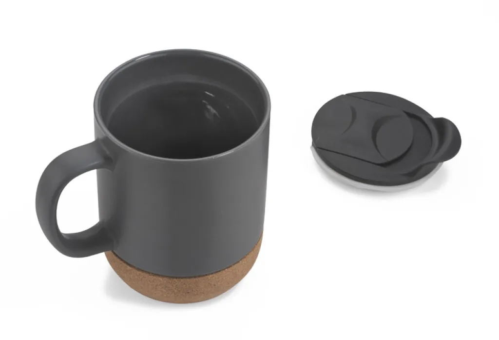 Keramička šalica s plastičnim poklopcem koji sprječava prolijevanje pića.