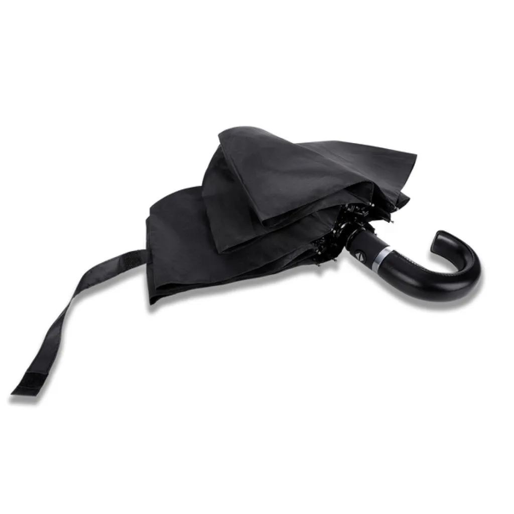 Automatski kišobran s funkcijom otvaranja/zatvaranja. Rebra od stakloplastike, metalni štap. Specijalna konstrukcija rebara onemogućuje da se okvir preokrene zbog vjetra. Uključuje vodootpornu pongee torbicu. Elegantna, ergonomska drška od eko kože.
