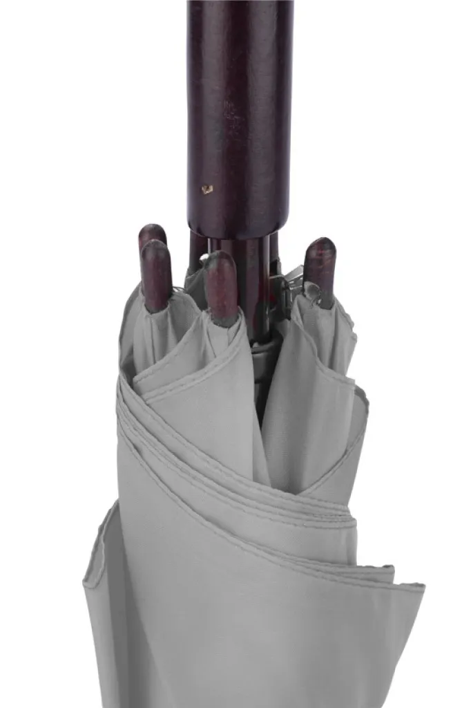 Kišobran s automatskim mehanizmom otvaranja i drvenom zakrivljenom ručkom. Promjer otvorenog kišobrana iznosi 103 cm, a dužina složenog kišobrana iznosi 90 cm.