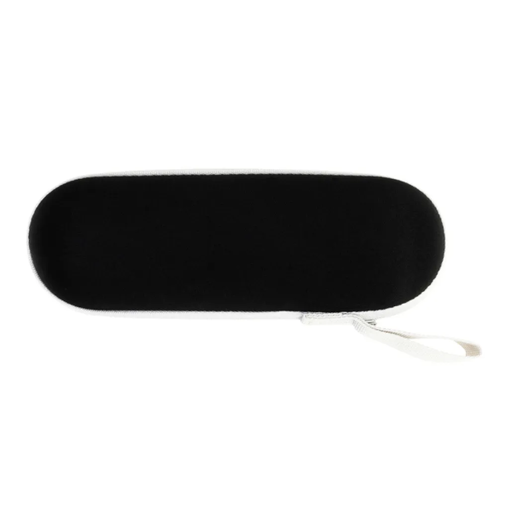 Sklopivi kišobran koji se ručno otvara i zatvara. Okvir i štap od metala, rebra od stakloplastike. Plastična drška s trakicom i držačem. Pakiran u čvrstu futrolu. Kompaktan i lagan.