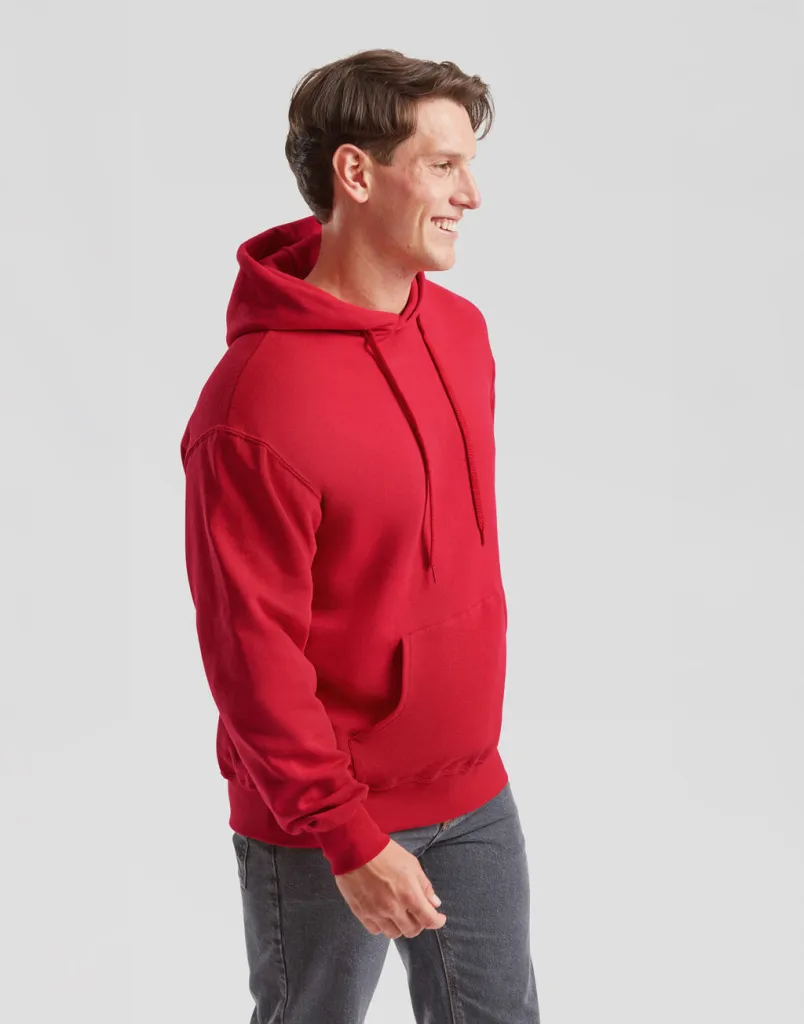 ·280 g/m² ·80% pamuk, 20% poliester ·Dvoslojna kapuljača s ušivenom vezicom za zatezanje u istoj boji kao i majica ·Ušiveni rukavi ·Našiveni džep ·Rebrasto tkane manžete i donji rub ·Dvostruko prošiveni šavovi na otvorima rukava ·Tubasta tkanina bez bočnih šavova