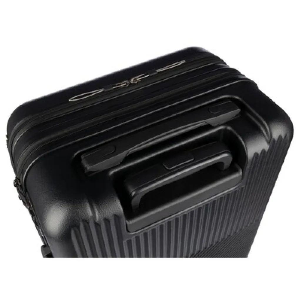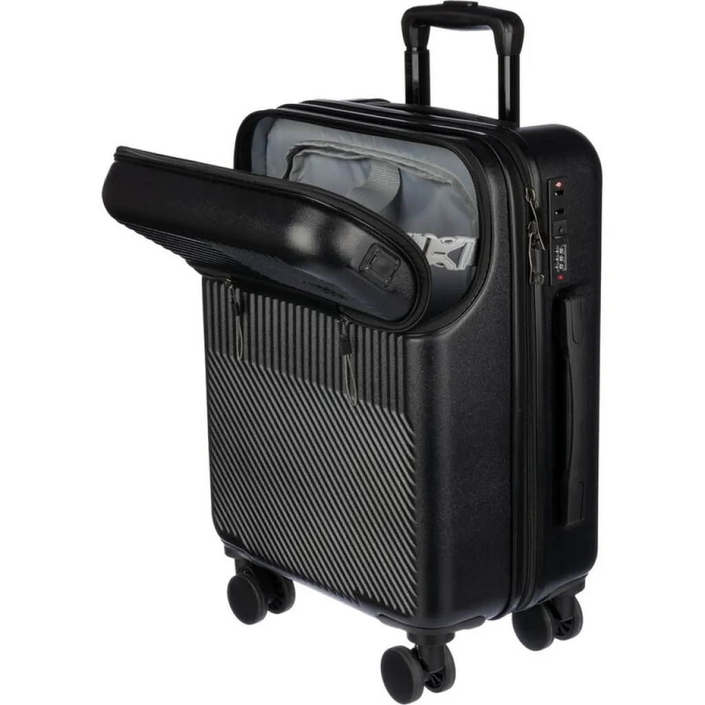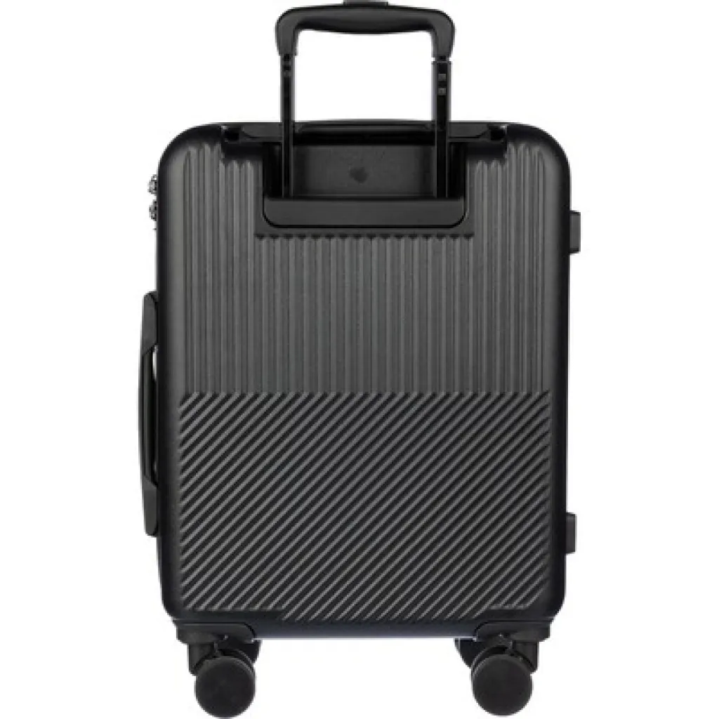 Kofer s kotačićima s prednjim džepom za prijenosno računalo s patentnim zatvaračem. Pogodan za putovanje autobusom, vlakom, automobilom ili avionom. Ima osam kotača te praktični sustav ručke na tri razine. Uključuje lokot sa šifrom koji štiti od krađe. Proizvod izrađen od ABS-a.