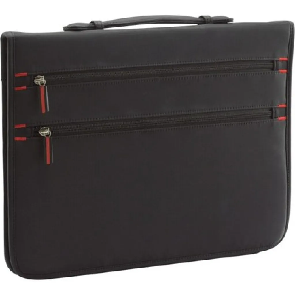Konferencijska mapa veličine približno A4 s patentnim zatvaračem, kalkulatorom i notesom (20 listova s crtama, jednostrani print), držačem kemijske olovke, 2 vanjska i 1 unutarnjim džepom s patentnim zatvaračima te pretincima za 4 kreditne kartica.