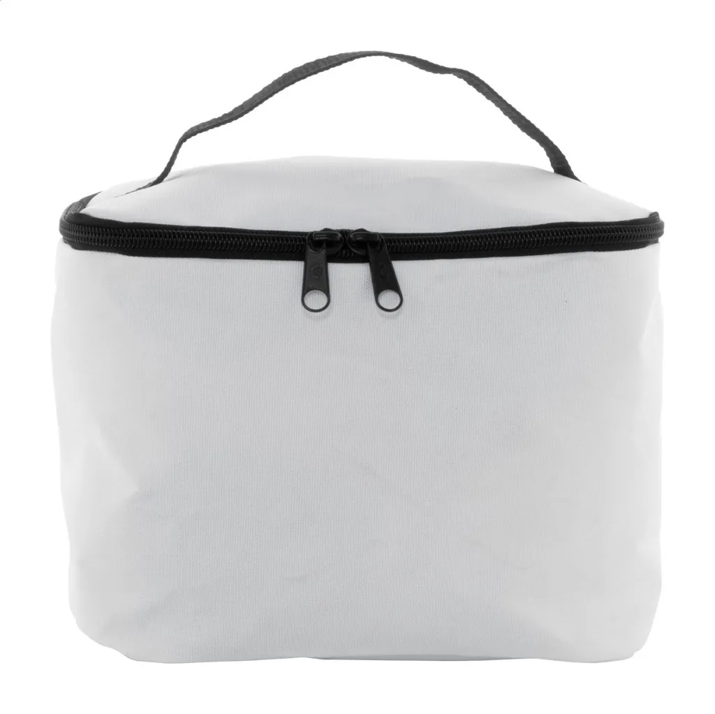 Po narudžbi izrađena RPET kozmetička torbica na patentno zatvaranje od 600D RPET poliestera s ručkom za nošenje. S uključenim sublimacijskim tiskom preko cijele površine. MOQ: 50 kom.