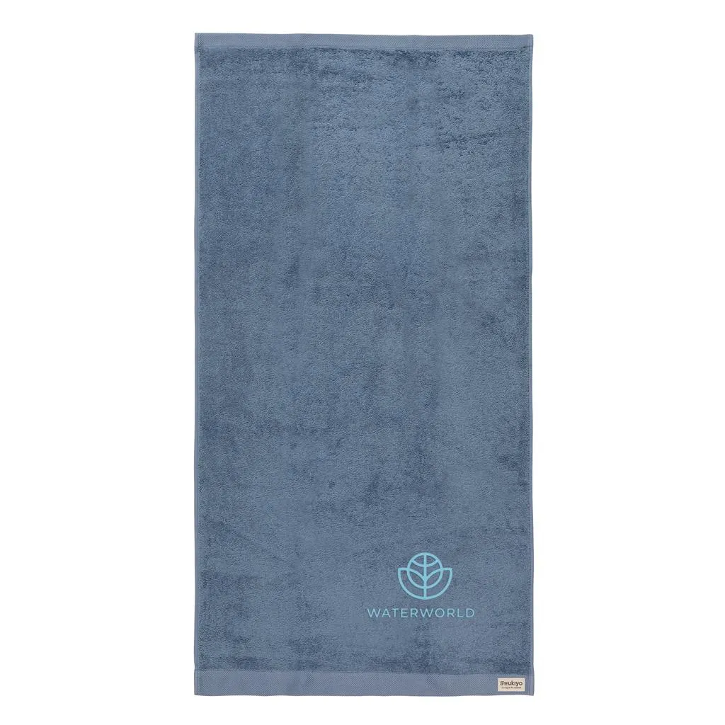 Kupaonski ručnik od 500 g, izrađen od 70% pamuka s OEKO-TEX certifikatom (u procesu proizvodnje ne koriste se štetne tvari ili boje) i 30% recikliranog pamuka.