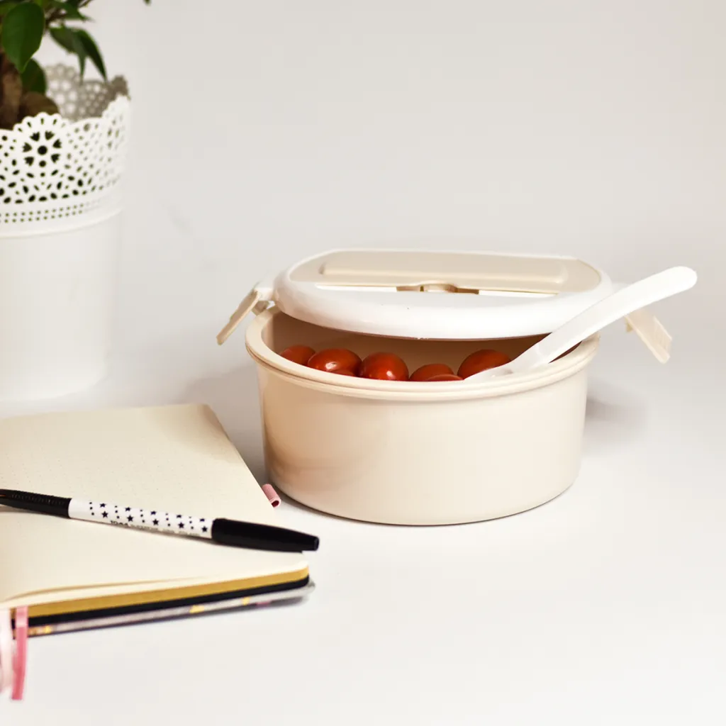 Praktična kutija za hranu u koju lako može stati velika salata ili drugi obrok. Sastoji se od prostrane zdjele i manje posude. Također ima zaseban odjeljak za vilicu. Kapacitet 1000 ml.